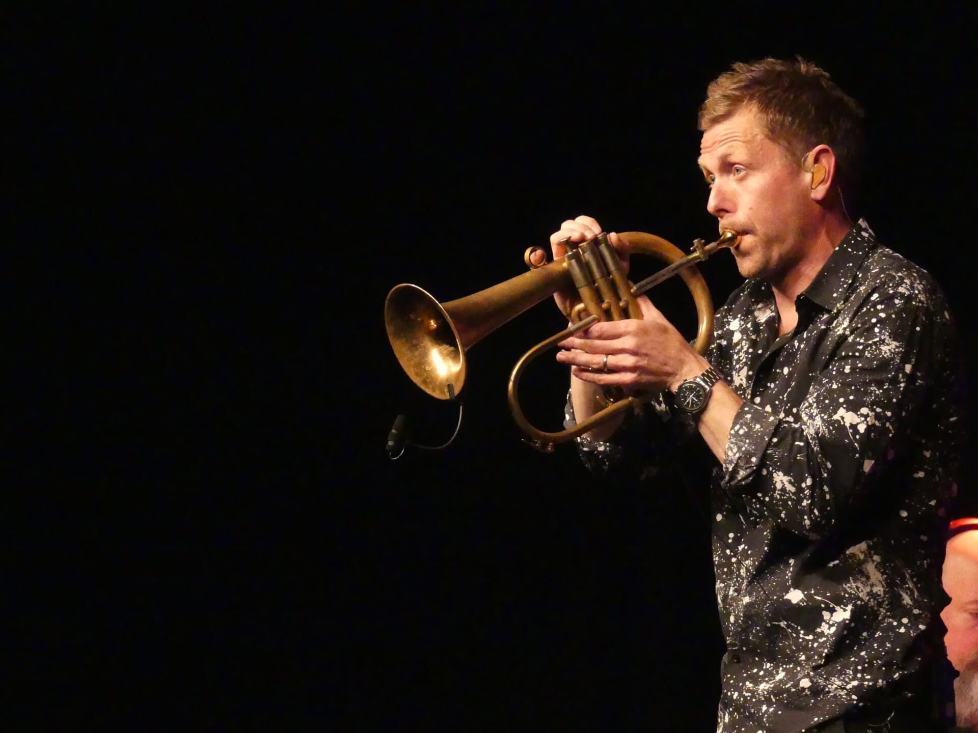Neben dem gefeierten Mittvierziger an Trompete und Flügelhorn geben drei Mannen ihr Bestes, die sich krankheitsbedingt aushelfend erst kurz vor dem Konzert in dieser Besetzung in Rottweil eingefunden haben. Respekt! Was für ein Klangkosmos an diesem Abend, welch‘ Kaleidoskop an Ideen, Läufen, Stücken und Sequenzen! Das wirkt wie jahrelanges Zusammenspiel, André Schwager an den Tasten und Simon Popp am Schlagzeug weben kunstvolle Teppiche, als hätten sie das schon immer gemeinsam getan.