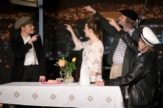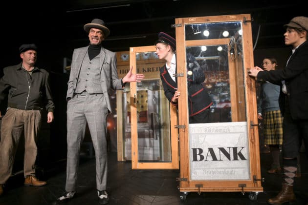 Das Team des Zimmertheaters vollbringt in der Produktion wahre Wunder. Zum einen, indem es den Großstadt-Figuren der Zwanzigerjahre pfiffig Präsenz verleiht. Zum andern, indem fünf reale Personen durch flotte Wechsel 14 Romanfiguren auf die Bühne zaubern – da sage noch einer, hier werde nicht mustergültig gewirtschaftet!