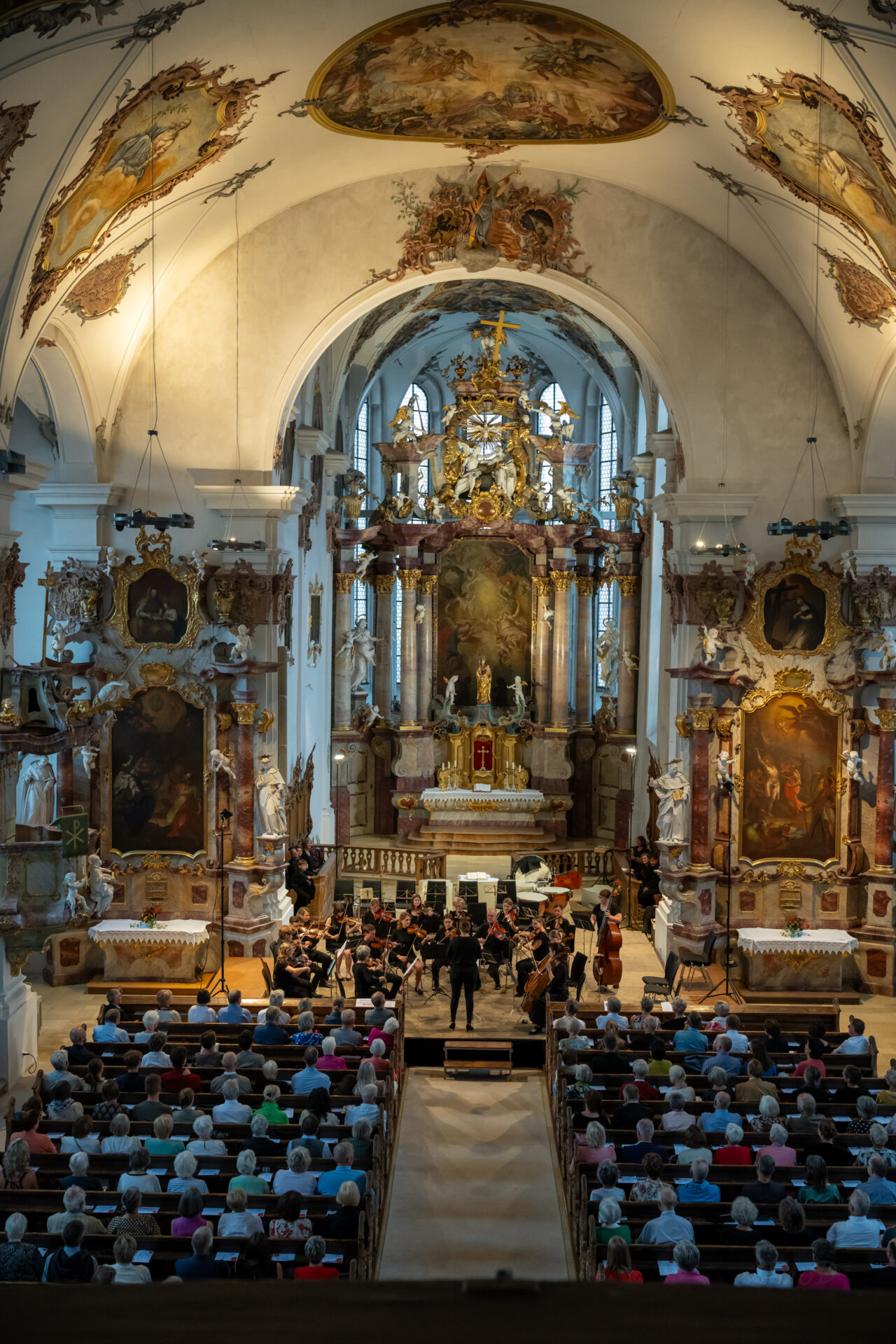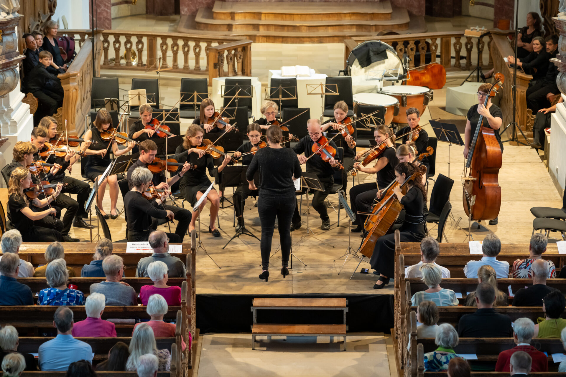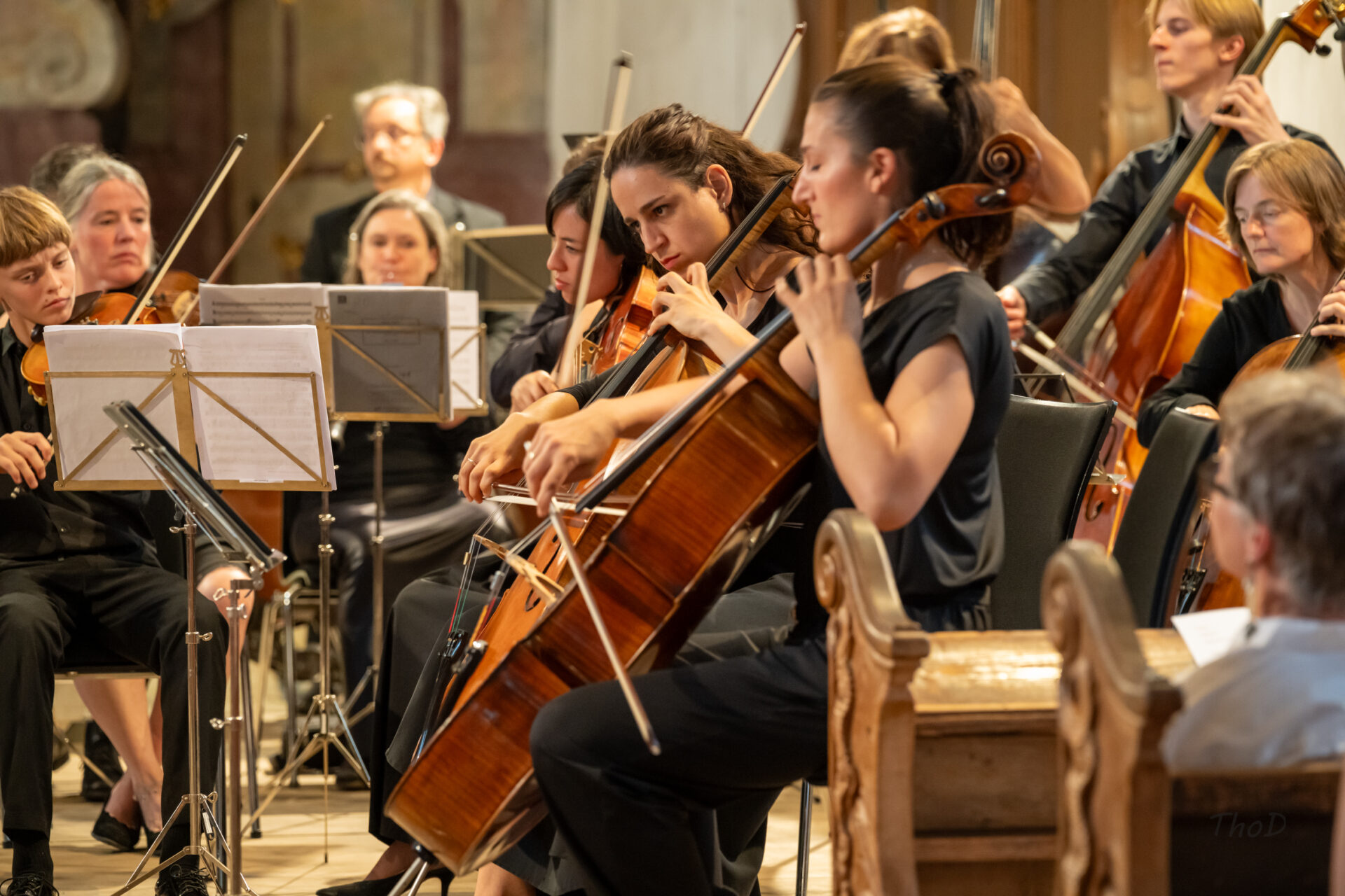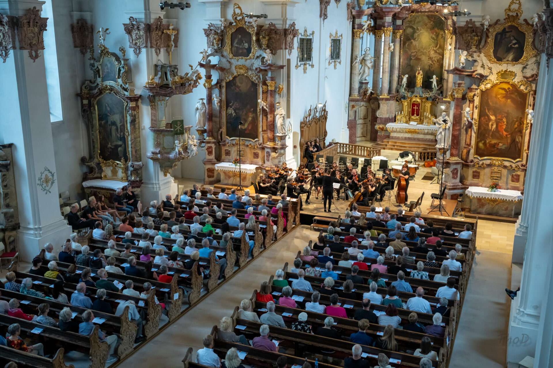 Wie bereits vor zwei Jahren vereinte ein Orchesterprojekt renommierte Künstlerinnen und Künstler des Festivalensembles mit Profis und Laien aus Rottweil und Umgebung. Weit über Rottweil hinaus bekannt sind Namen wie Julia Guhl, Simon Strasser, Elias und Valentin Schneider, Janina Ruh oder Fritz Pahlmann. In der wunderschönen barocken Atmosphäre der Predigerkirche waren am Sonntagabend klassische, romantische und zeitgenössische Werke zu hören. Unser Fotograf Thomas Decker vom Team Ralf Graner Photodesign war dabei.