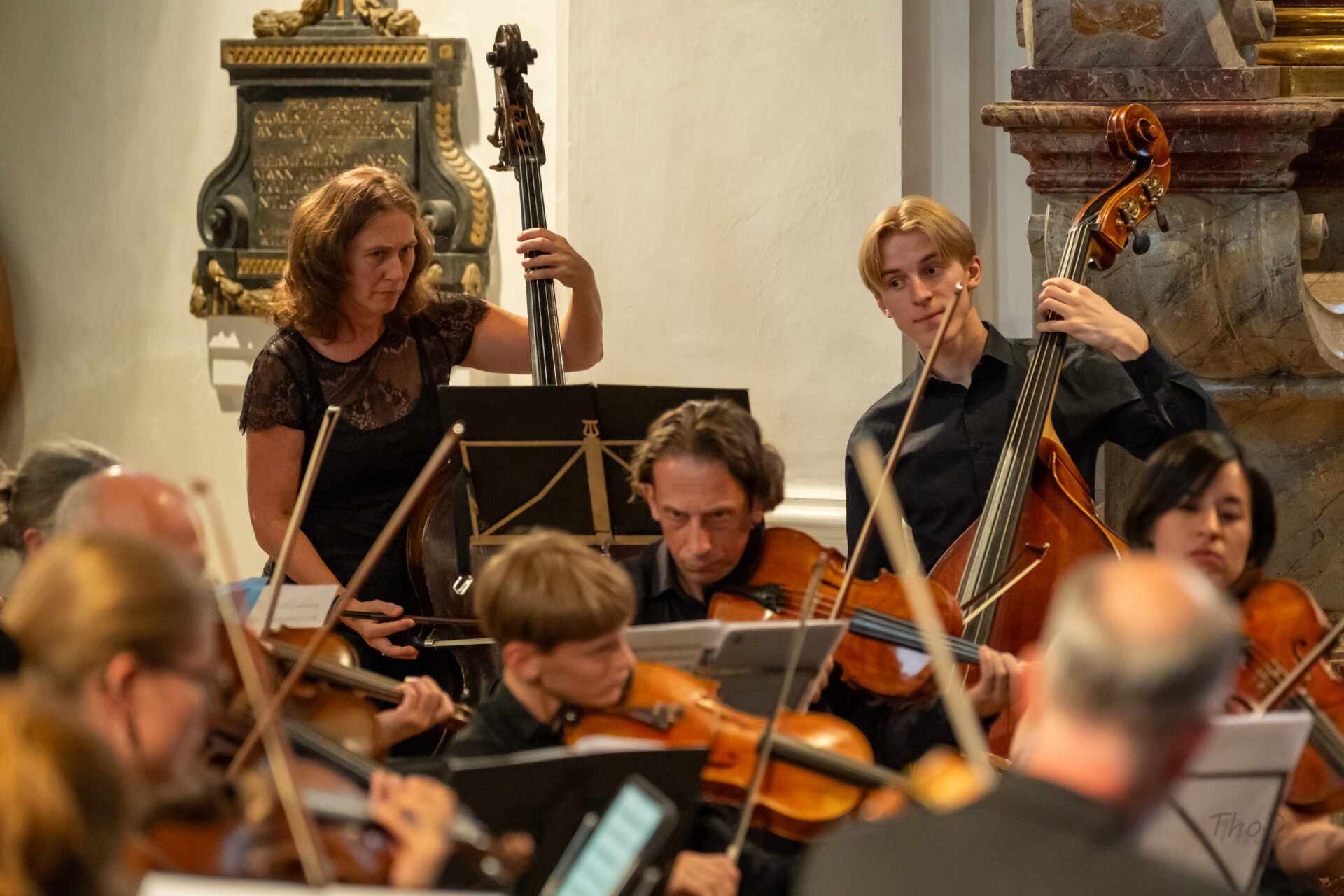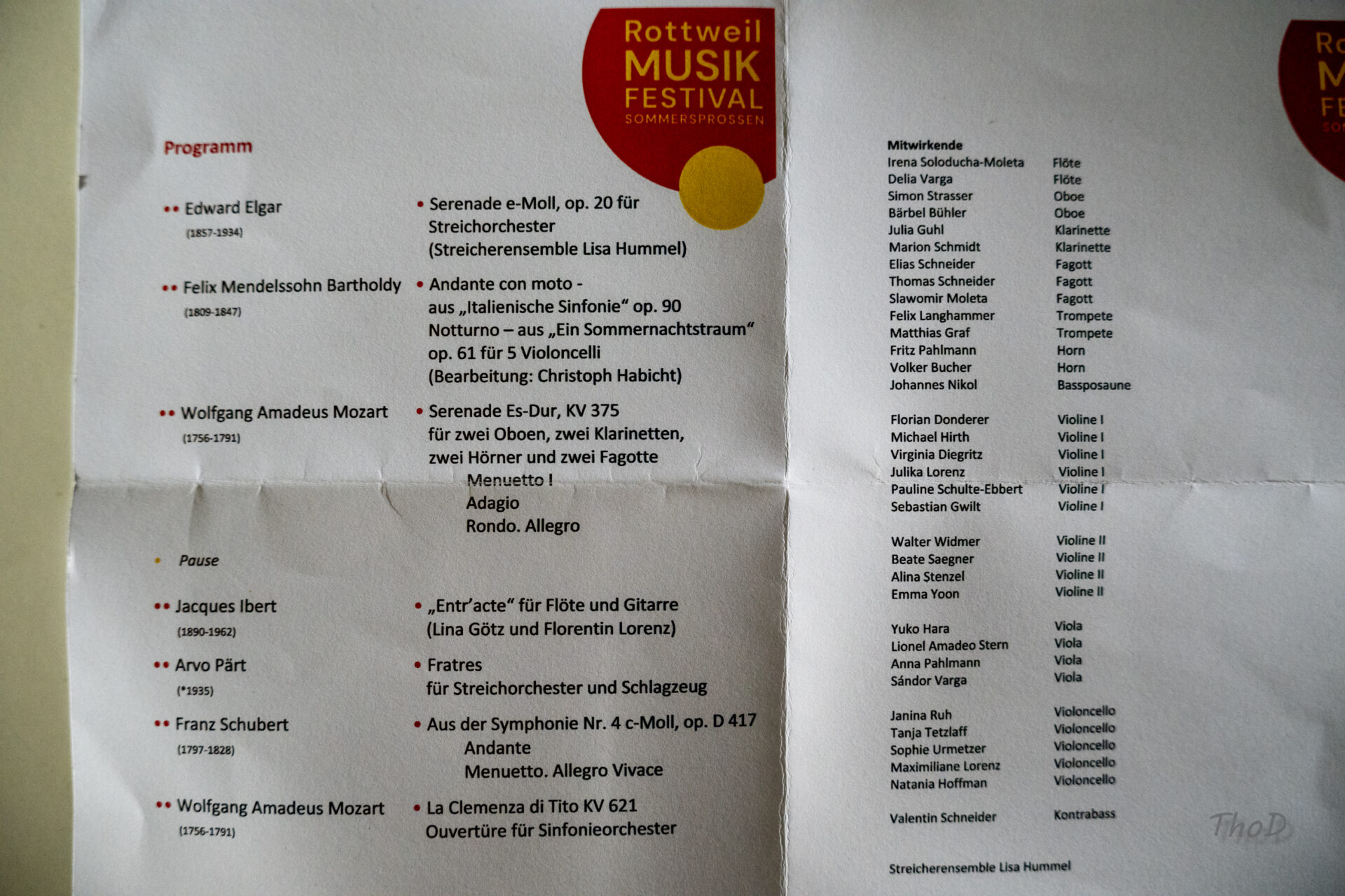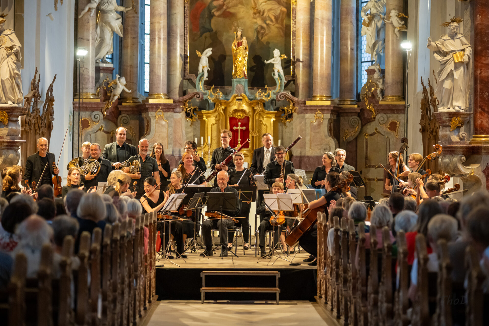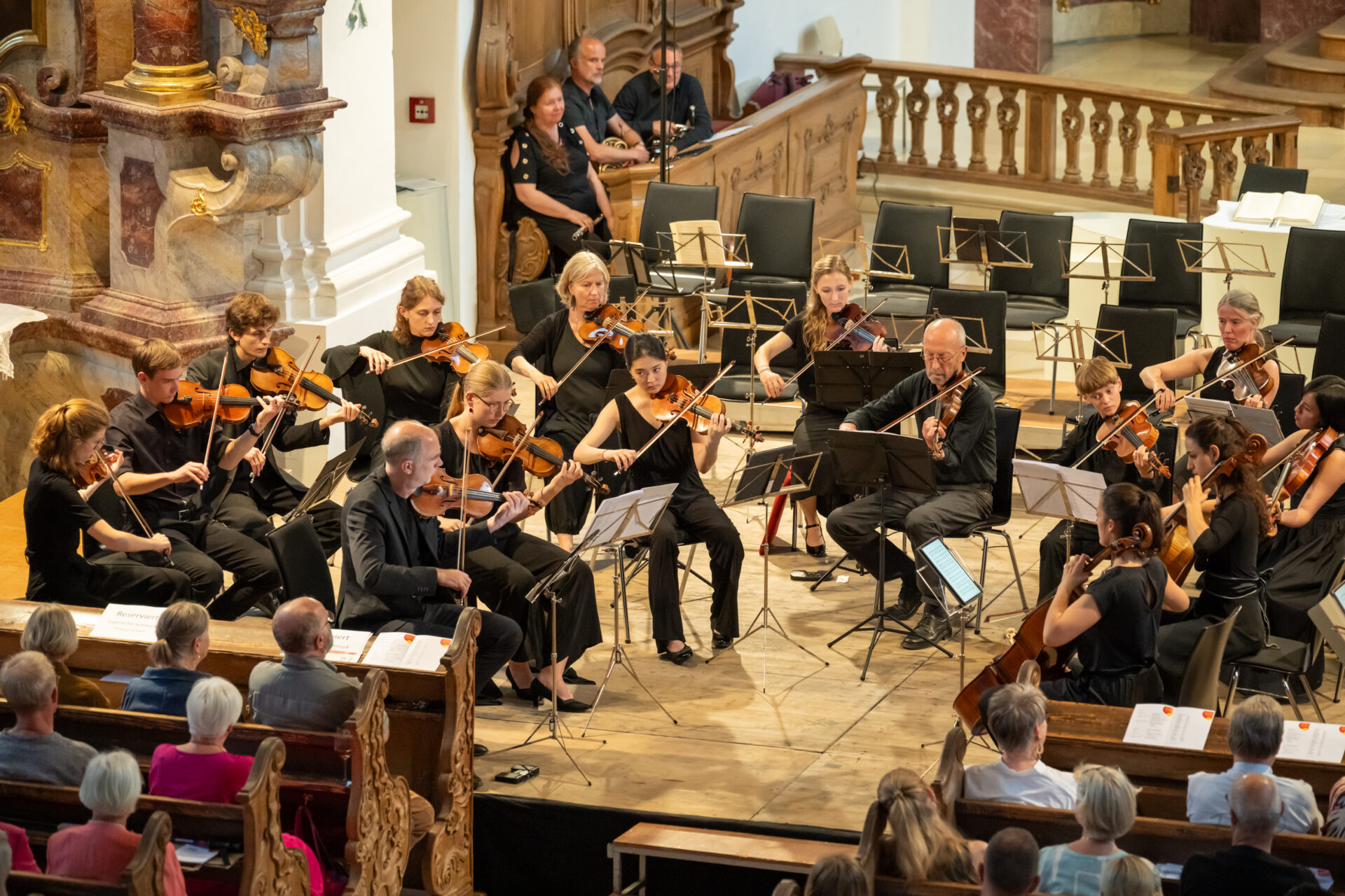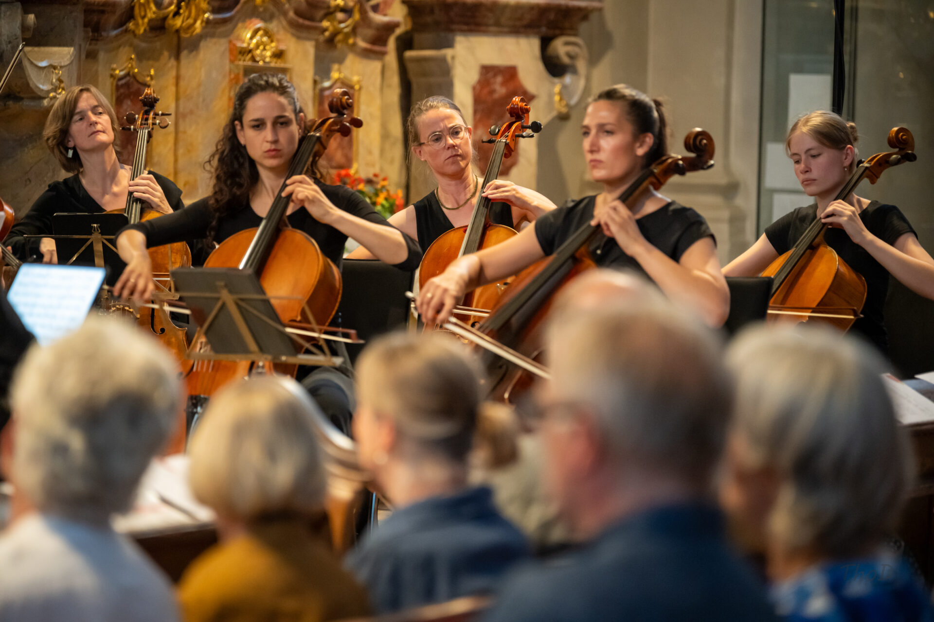 Wie bereits vor zwei Jahren vereinte ein Orchesterprojekt renommierte Künstlerinnen und Künstler des Festivalensembles mit Profis und Laien aus Rottweil und Umgebung. Weit über Rottweil hinaus bekannt sind Namen wie Julia Guhl, Simon Strasser, Elias und Valentin Schneider, Janina Ruh oder Fritz Pahlmann. In der wunderschönen barocken Atmosphäre der Predigerkirche waren am Sonntagabend klassische, romantische und zeitgenössische Werke zu hören. Unser Fotograf Thomas Decker vom Team Ralf Graner Photodesign war dabei.