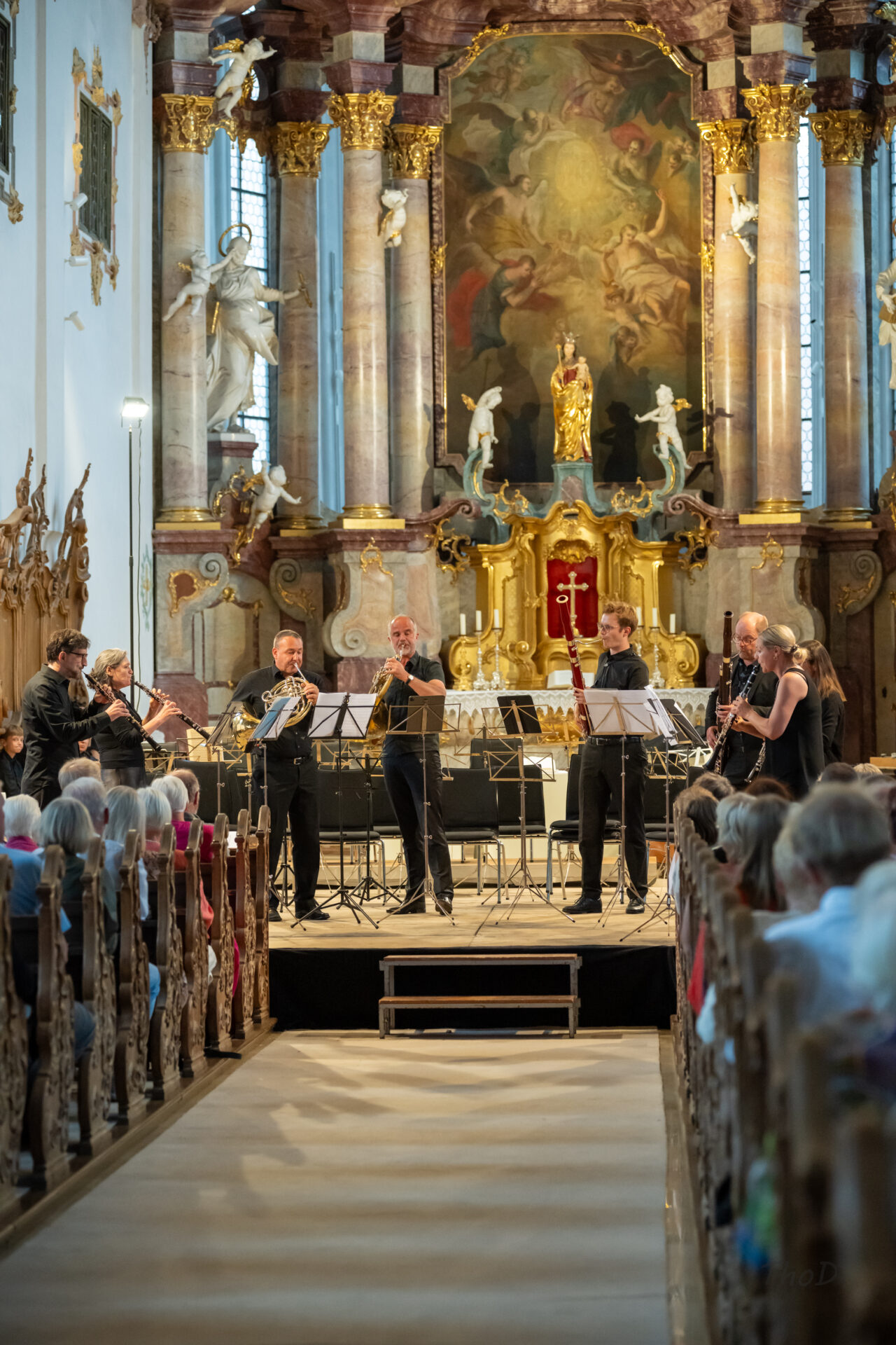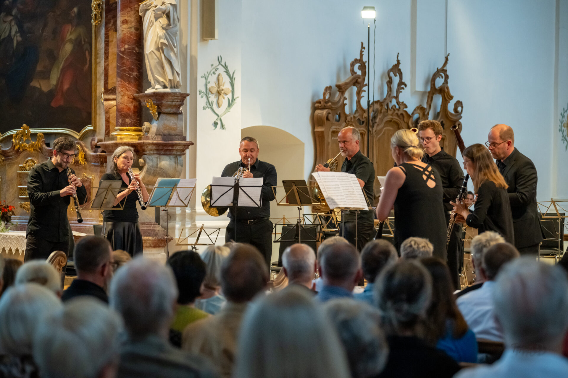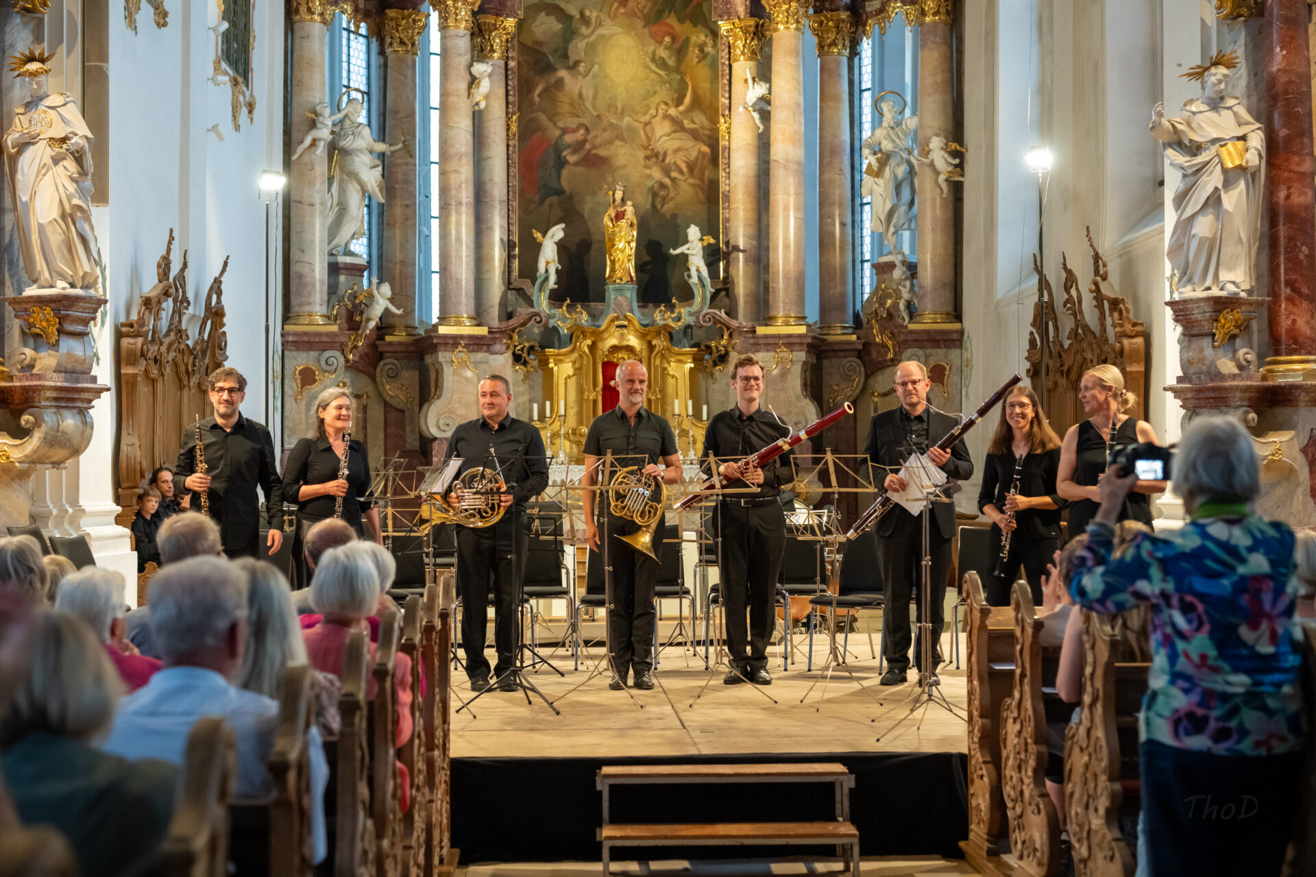 Anschließend kamen die Blasinstrumente zu ihrem Recht: Mozarts Serenade Es-Dur wurde geschrieben für zwei Oboen, zwei Klarinetten, zwei Hörner und zwei Fagotte. Sie entstand 1781 als kunstvoll gearbeitete Bläsermusik und enthält trotz ihres unterhaltsamen Charakters anspruchsvolle kontrapunktische und harmonische Passagen.