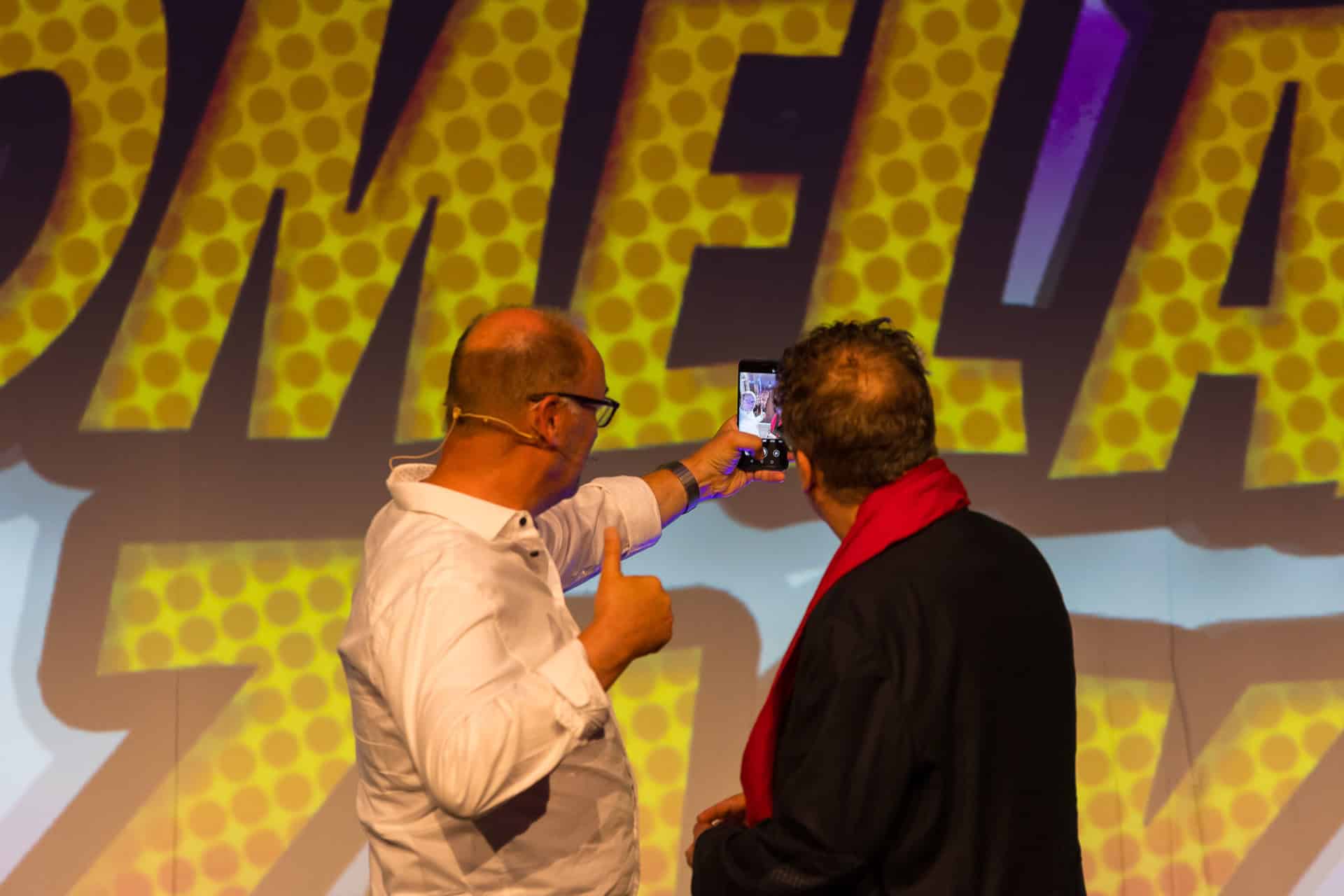 (Rottweil) Schwabe und Badener ergänzten sich trefflich, der Badener Müller, vor allem als Stimmen-Imitator auf SWF3 bekannt geworden, und der Schwabe Klaus Birk, der Kabarettist und Comedian. Die Dialoge: Köstlich. Die beiden können sich die Bälle zuwerfen, nehmen viele aufs Korn – nicht nur Schwaben und Badener. Und sind aktuell, wo es passt: Die „Löwin“-Affäre von Berlin müssen sie nur erwähnen, schon ernten sie den Lacher. Die Landespolitiker Kretschmann und Strobl bekommen ihr Fett weg, auch Günther Oettinger, Boris Becker und viele mehr… Müller lässt sie akustisch selbst erscheinen, während sie überlebensgroß auf die Leinwand projiziert werden.