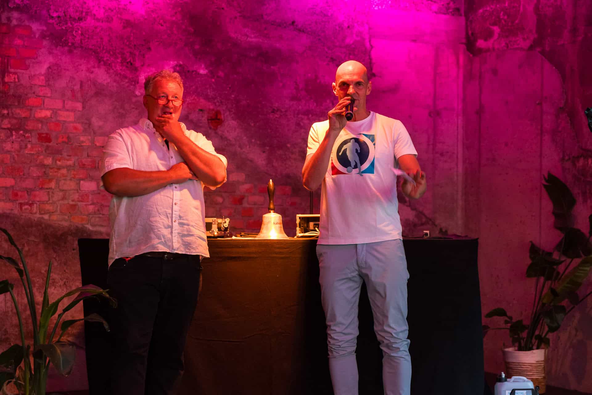 Da sind zwei Männer mittleren Alters, reden scheinbar wie am Stammtisch so spontan – aber die Pointen sitzen, und das Publikum lacht ständig. Comedian Klaus Birk und Komiker Andreas Müller brachten dem Publikum im gut gefüllten Kraftwerk einen tollen Abend.