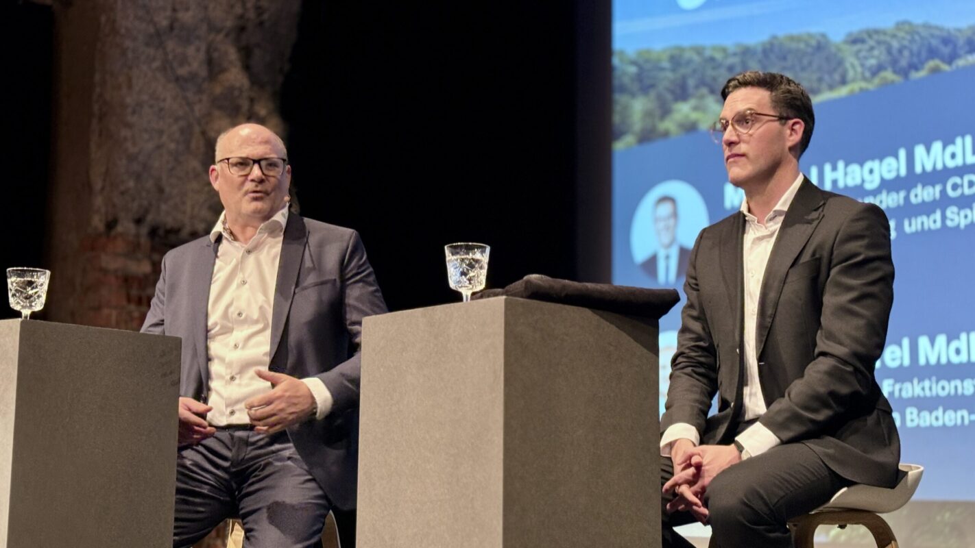 Rottweil – Wahlkampf kann laut, zugespitzt und konfrontativ sein. In Rottweil zeigte er sich an diesem Sonntagabend von einer anderen Seite: persönlich, humorvoll und stellenweise erstaunlich nachdenklich. Beim Bühnen-Talk traf CDU-Spitzenkandidat Manuel Hagel auf den Rottweiler Landtagsabgeordneten Stefan Teufel – und beide gewährten Einblicke, die über klassische Wahlkampfbotschaften hinausgingen. Das Gespräch leitete der Moderator Michael Harter.