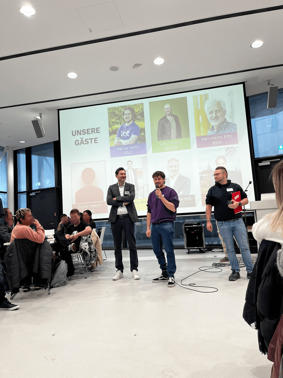Die Schüler des Technischen Gymnasiums der Erich-Hauser-Gewerbeschule und Auszubildende zu Medizinischen Fachangestellten und Öffentlichen Verwaltungsfachangestellten der Nell-Breuning-Schule hatten sich gut auf das Aufeinandertreffen mit den Kandidaten von CDU (Stefan Teufel), SPD (Ali Zarabi), Grünen (Artur Eichin), FDP (Daniel Karrais), Linken (Daniel Hettich), BSW (Karl-Heinz Eith) sowie Volt (Marius Dettki) vorbereitet. Die AfD antwortete auf wiederholte Einladungen nicht und konnte beziehungsweise musste ihre Positionen gegenüber den motivierten Schülern nicht verteidigen.