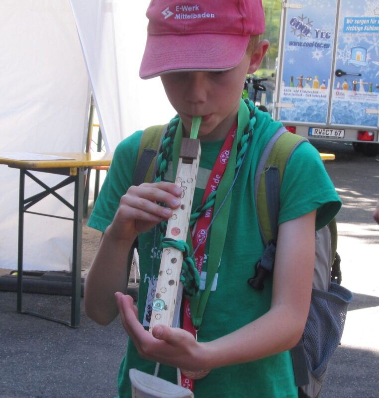 Malte ist neun Jahre alt. „Ich habe eine Flöte gebastelt.“ Sie hat nur einen Ton. „Aber wenn man unten die Hand drauf hält, gibt es einen zweiten Ton.“