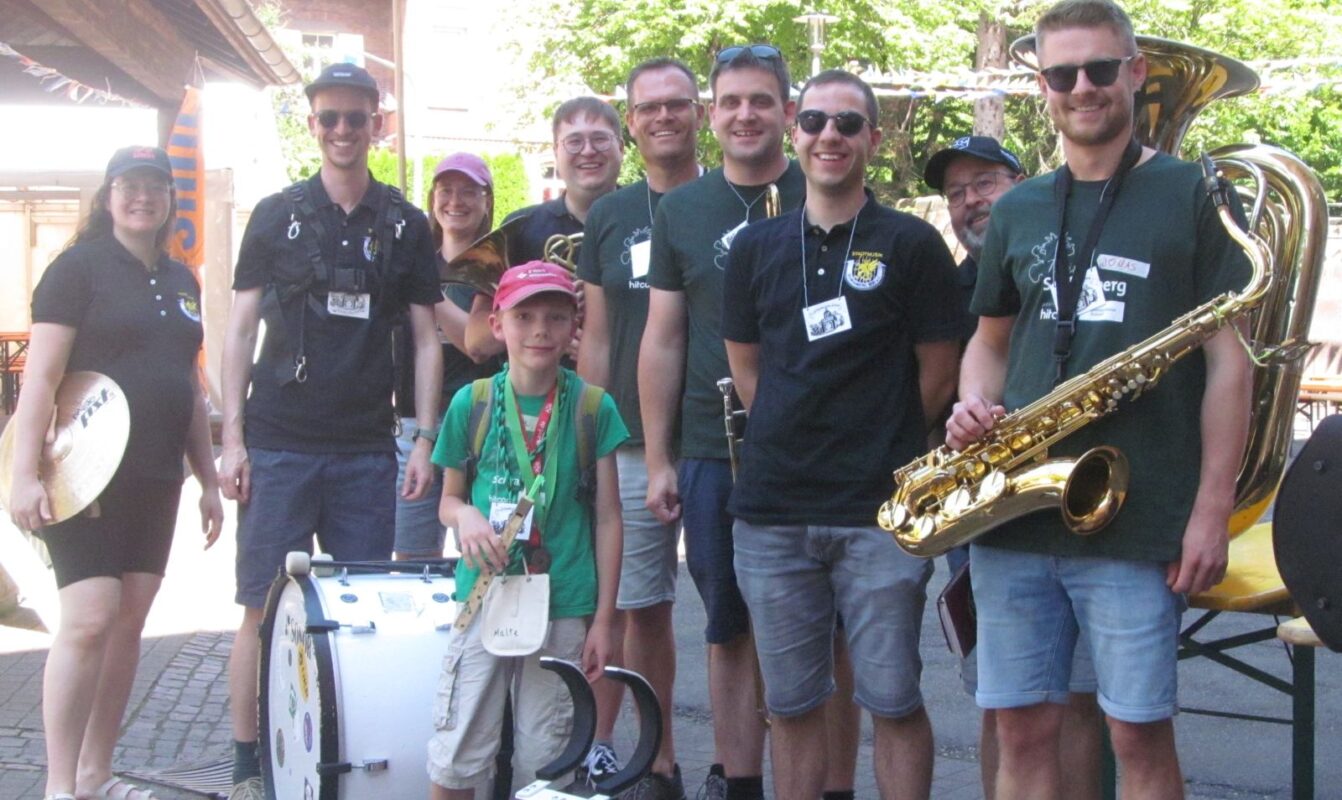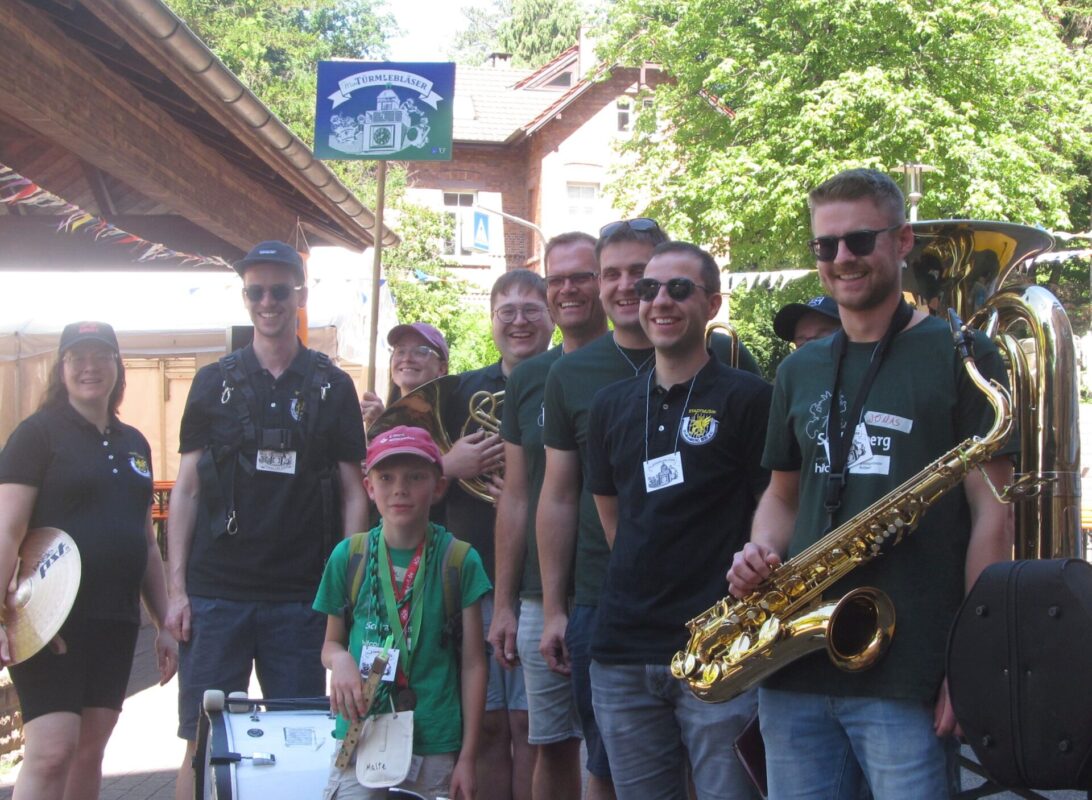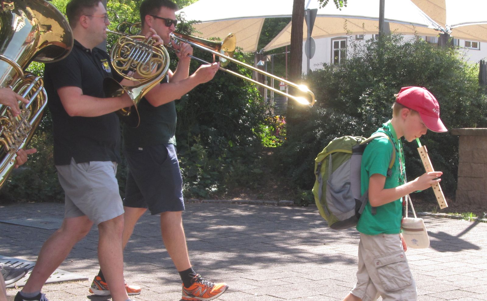 Zum Abschluss haben sich die Türmlebläser auf dem Schulhof getroffen.