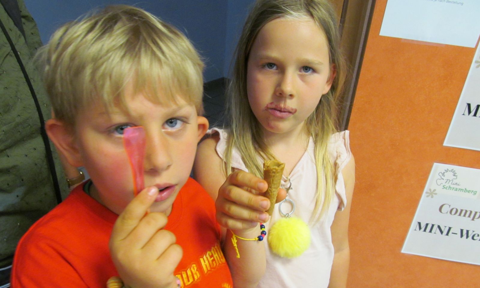 Plötzlich kommen Kinder und beschweren sich, sie kamen extra aus Österreich, um bei mini Schramberg dabei zu sein…