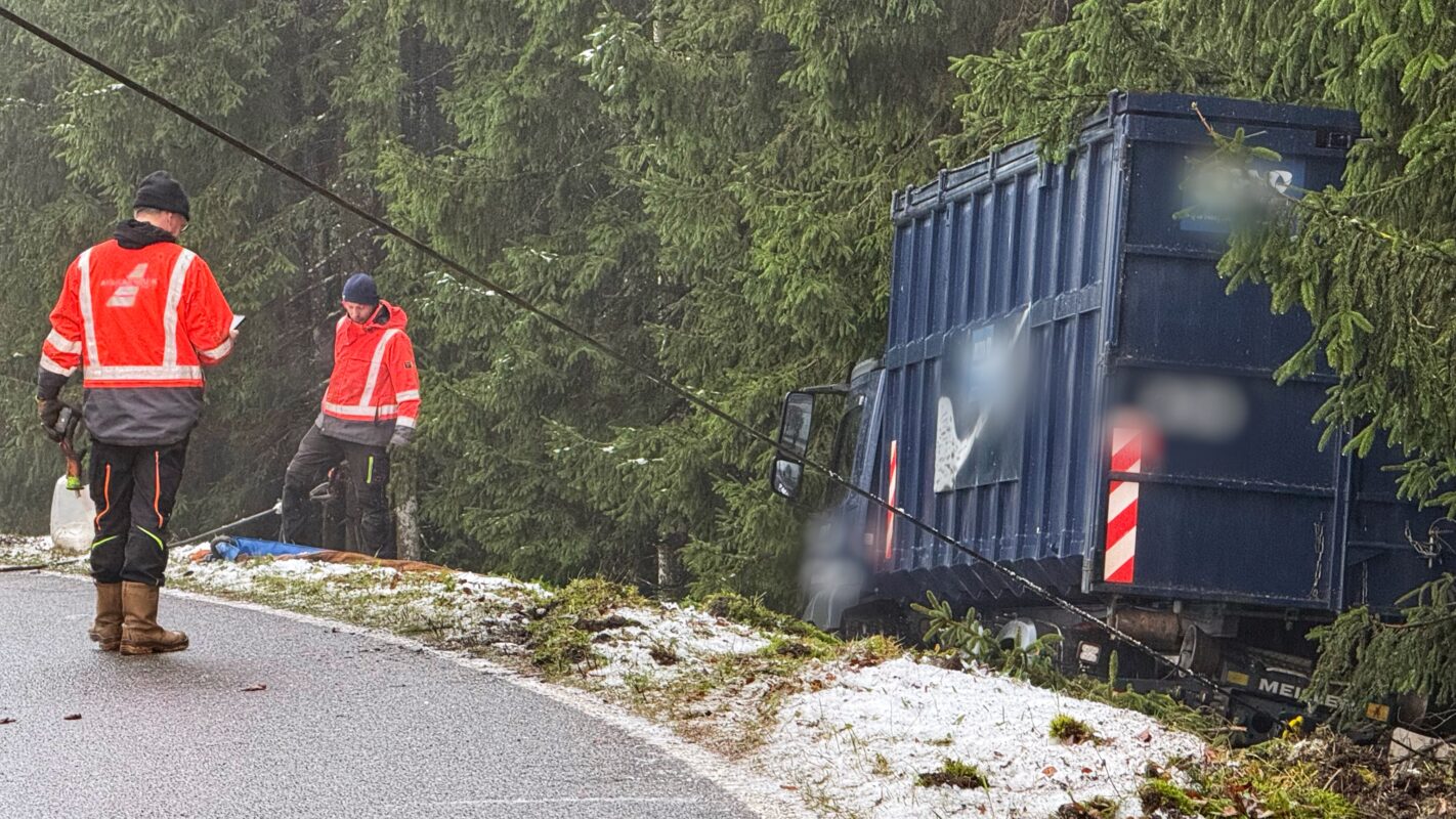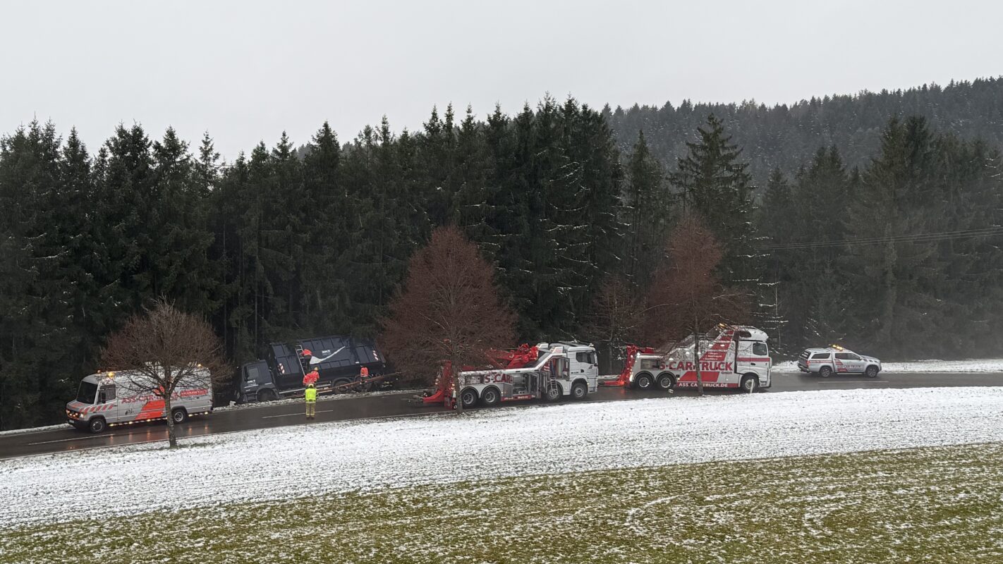 Am Morgen musste auch die Kreisstraße zwischen Horgen und Flözlingen voll gesperrt werden. Dort ist ein LKW in einer Linkskurve wohl auch wegen Straßenglätte nach rechts von der Fahrbahn abgekommen. Der Schwerlaster landete im Wald. Glücklicherweise blieb der Fahrer laut Polizei unverletzt, er erlitt allerdings einen Schock.