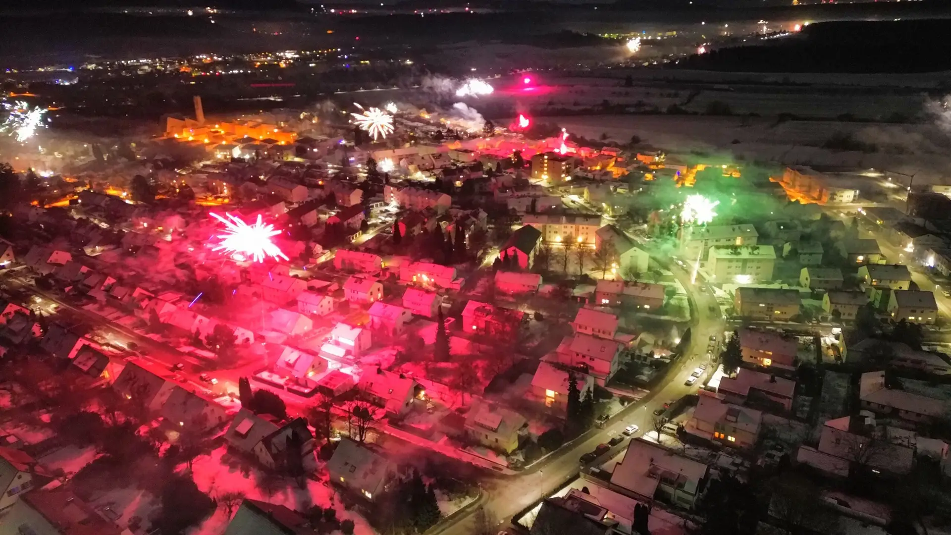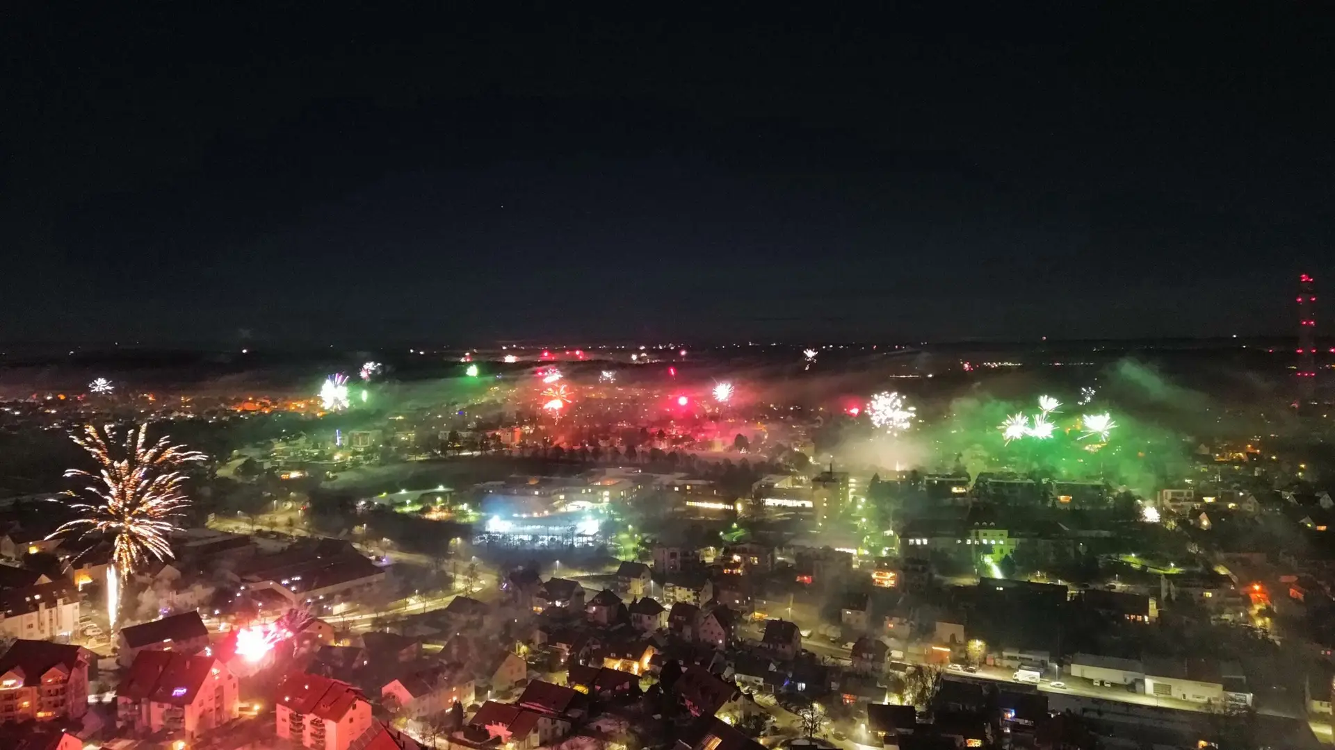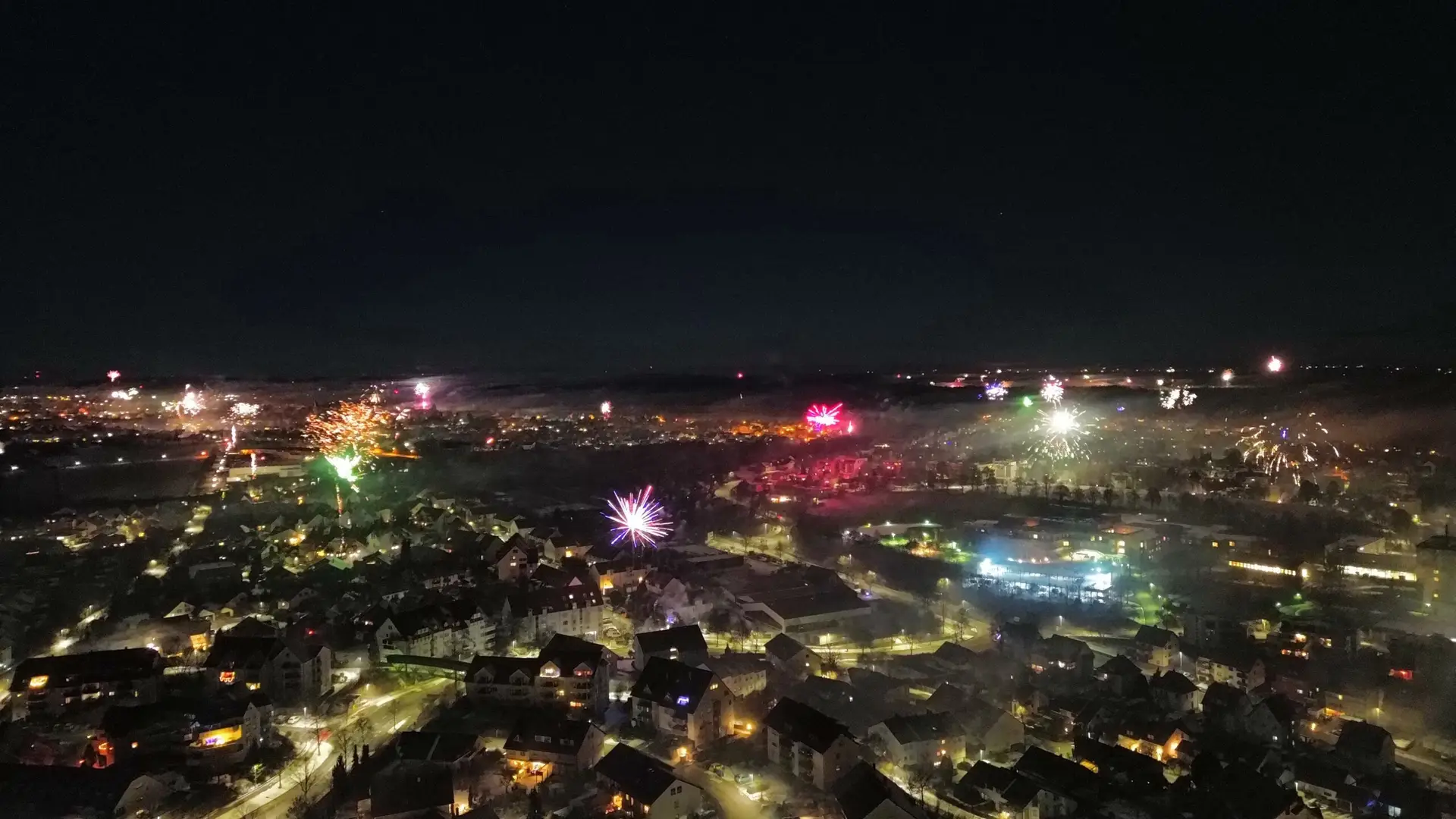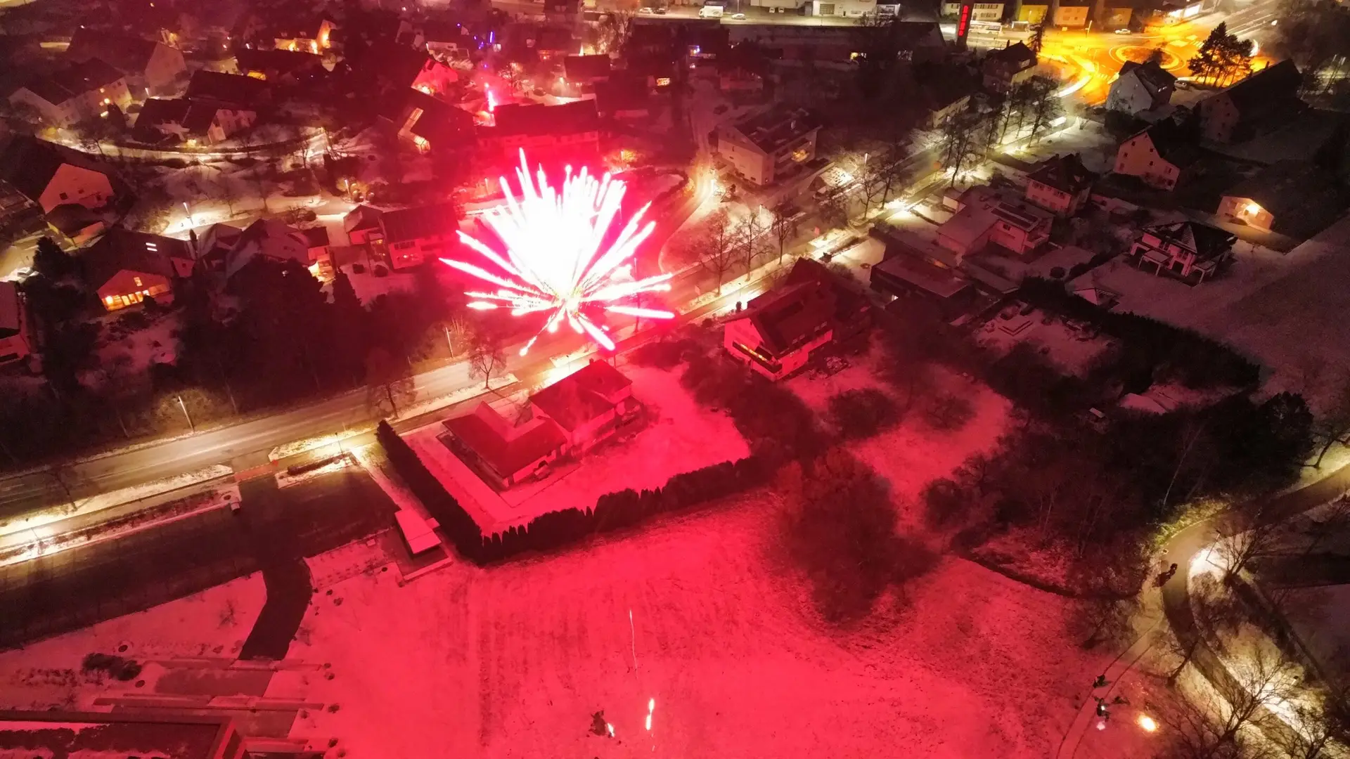 Eine besondere Sicht auf Silvester und das Feuerwerk zum Jahreswechsel ermöglicht uns ein Leser aus Rottweil: Er sandte uns Aufnahmen aus einer Drohne zu. Die Aufnahmen zeigen die Stadt samt Testturm. An verschiedenen Orten steigen Raketen auf, und teils befindet sich die Kamera mitten unter den in der Luft explodierenden Feuerwerkskörpern. Die Aufnahmen sind in der Nähe des Wasserturms Rottweil enstanden.