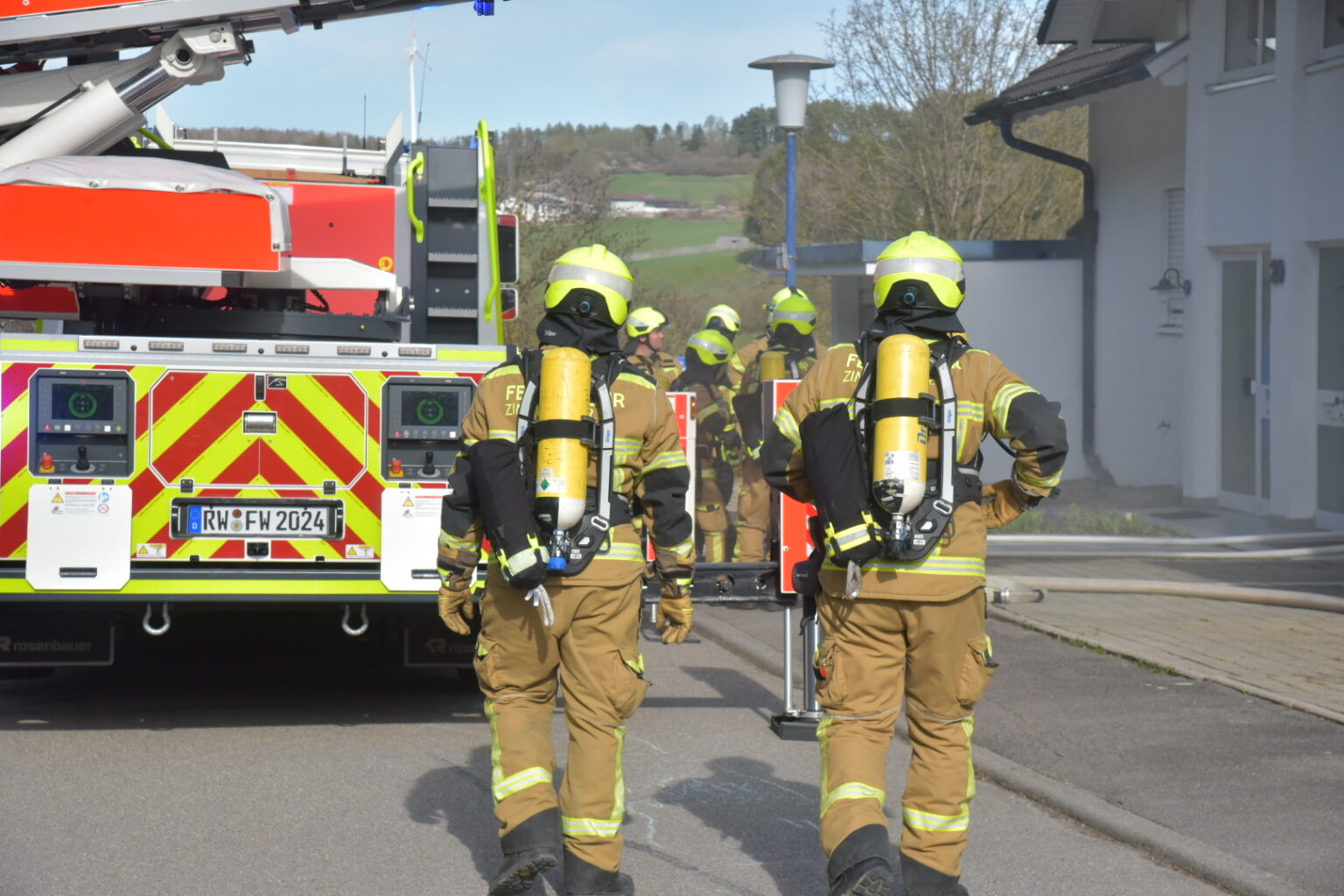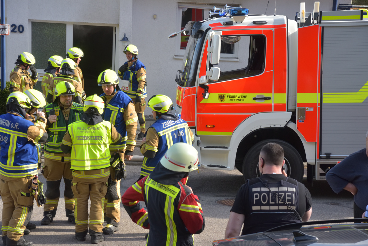 Im Einsatz waren die Freiwillige Feuerwehr Zimmern ob Rottweil mit acht Fahrzeugen und 44 Einsatzkräften sowie die Feuerwehr Rottweil mit drei Fahrzeugen, darunter eine Drehleiter. Der Rettungsdienst war mit einem Rettungswagen vor Ort, musste jedoch nicht eingreifen.