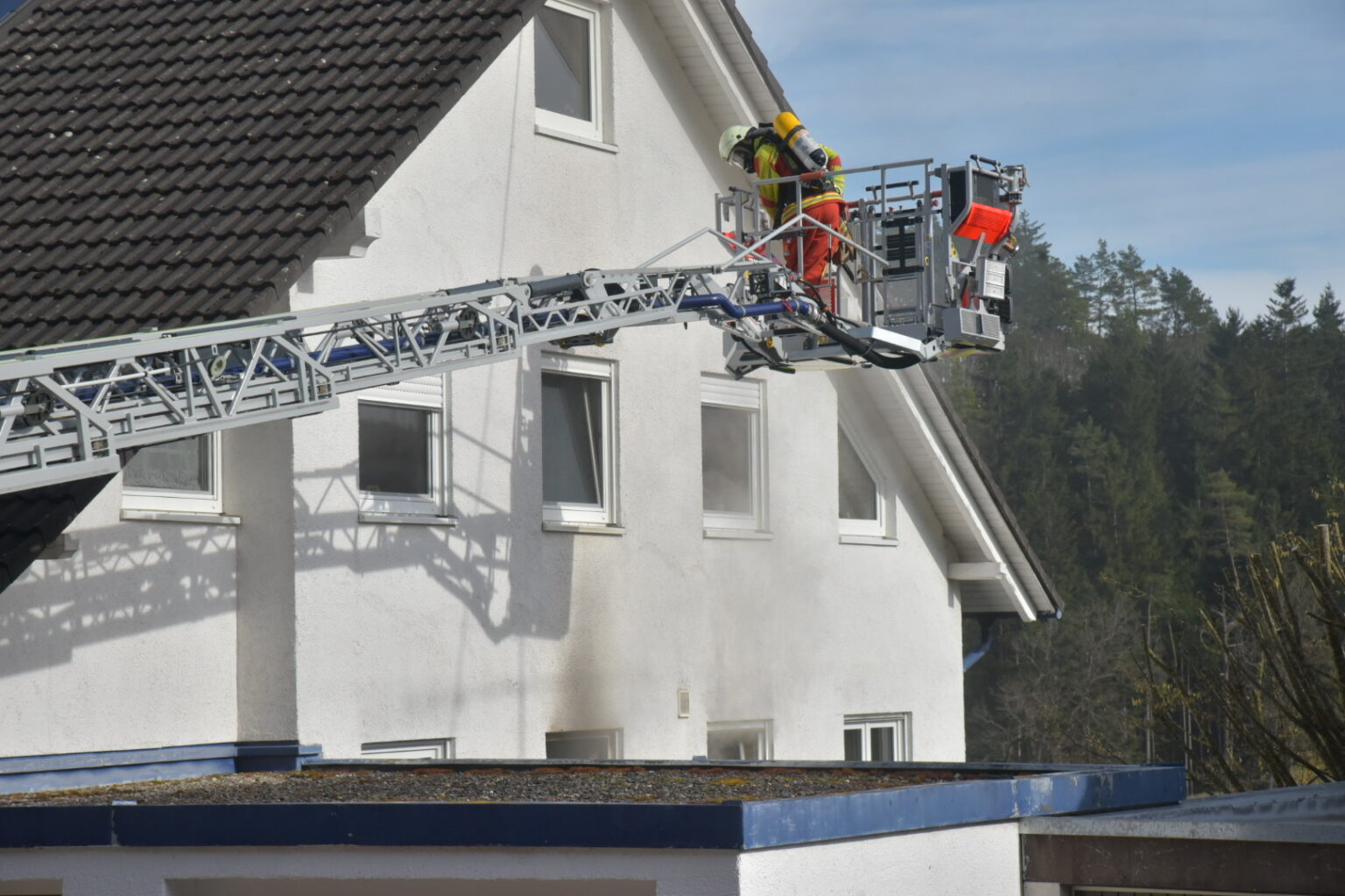 Demnach entstand der Brand in einer Erdgeschosswohnung eines Sechsfamilienhauses. Eine weithin sichtbare Rauchsäule hatte auf das Feuer aufmerksam gemacht. Bereits am Nachmittag waren Feuerwehr und Rettungsdienst mit einem größeren Aufgebot ausgerückt. Die Feuerwehr brachte den Brand rasch unter Kontrolle, die betroffene Wohnung blieb jedoch stark verraucht.