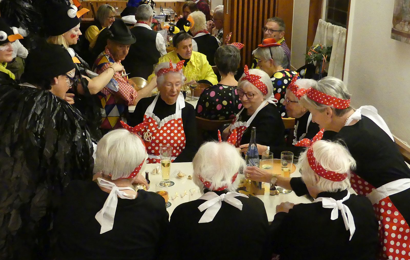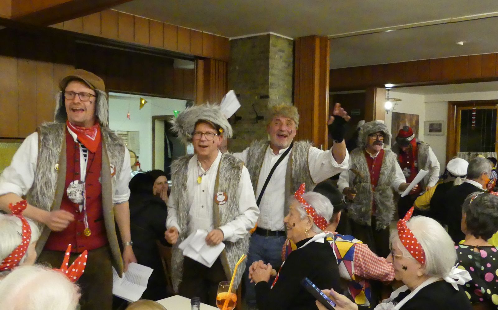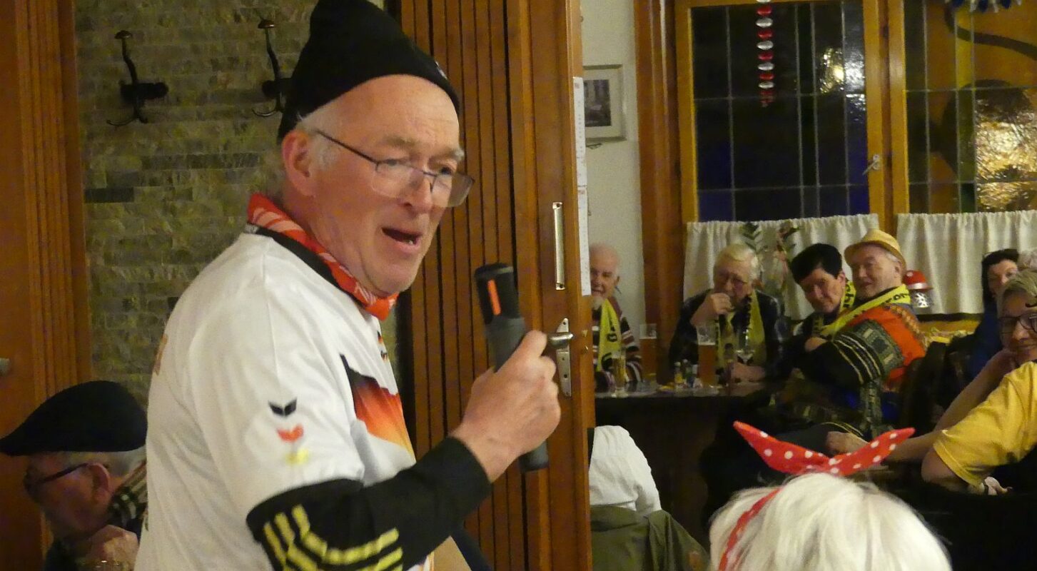 Doch sie brächten die Rettung und legten goldene Eier versprachen sie. Zur Melodie von „Country Roads“ sagen sie „Vogel Strauß, riesengroß, Leg ein Ei, mach‘ es bloß“ und die Wirtschaft sang voll Inbrunst mit. Belohnt haben die Elferfrauen mit goldenen (Schoko) Eiern, Eierlikör und Straußstempeln für die Wangen.