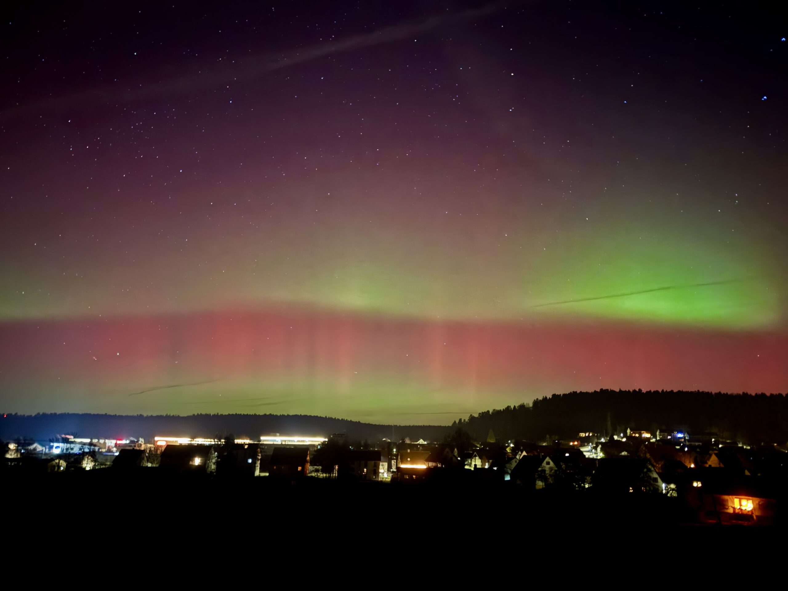 Magisches Himmelsspektakel über Rottweil: In der vergangenen Nacht haben Polarlichter die Region in ein faszinierendes Farbenspiel getaucht. Von zartem Grün bis kräftigem Pink leuchtete der Himmel über Rottweil und Umgebung – ein seltenes Naturschauspiel, das viele unserer Leserinnen und Leser mit der Kamera festgehalten haben. Hier kommt unsere Galerie mit den zauberhaftesten Aufnahmen der Nacht!
