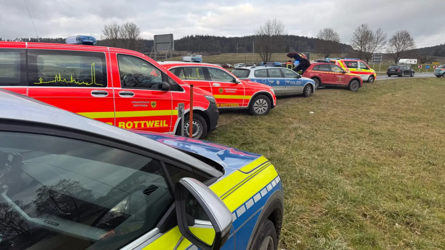 Unser Erstbericht: Für die Klärung setzt der Verkehrsunfalldienst der Polizei eine Drohne ein: Aus bislang unbekannten Gründen ist ein 84-Jähriger* mit seiner BMW-Limousine aus einem Kreisverkehr bei Rottweil heraus-, dann über eine Wiese gefahren, gegen einen Baum geprallt und schließlich in einem Bach stehen geblieben. Der Fahrer wurde dabei schwer verletzt. Ein Ersthelfer und Unfallzeuge kümmerte sich um ihn – und brach, nachdem der Senior den Rettungskräften übergeben worden war, selbst zusammen. Es bestand Verdacht auf Unterkühlung, weil er bei den Rettungsversuchen stark durchnässt wurde.