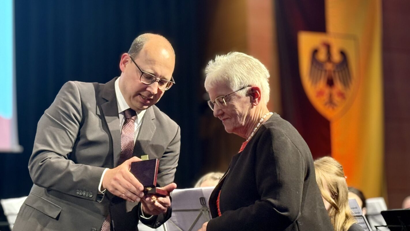 für langjährige ehrenamtliche Tätigkeit in der Kirchenarbeit, der Trauerbegleitung und der Betreuung älterer Mitbürgerinnen und Mitbürger