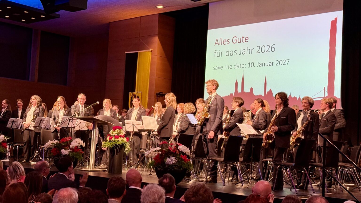 Zum Abschluss des festlichen Abends lud OB Dr. Christian Ruf zum Sektempfang ein, musikalisch begleitet von der Stadtkapelle Rottweil.