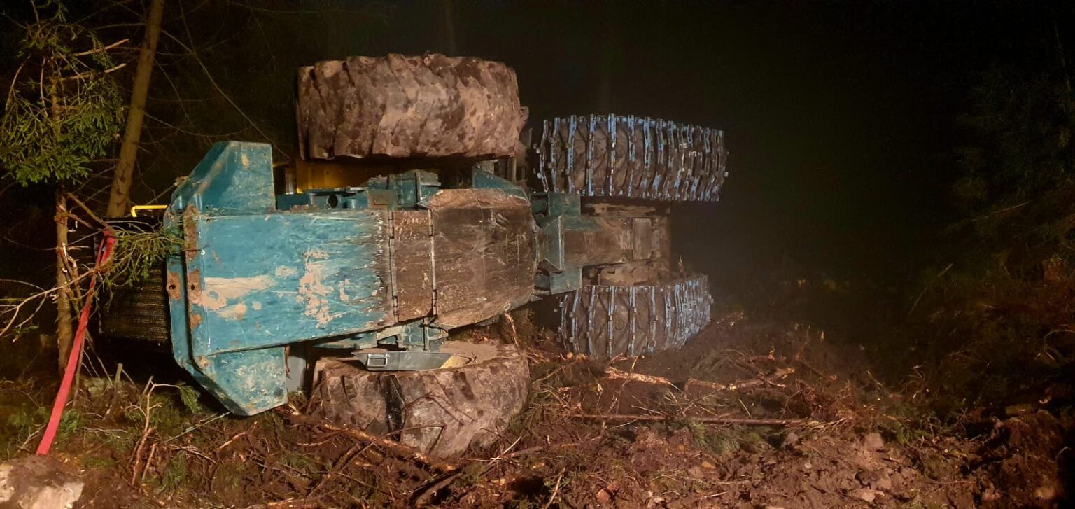Bereits zuvor hatte eine umgestürzte Forstmaschine im Schramberger Ortsteil Tennenbronn einen größeren Einsatz von Feuerwehr, Landratsamt und Polizei ausgelöst. Ein Zeuge meldete gegen 20.15 Uhr, dass seit dem Nachmittag in einem Waldgebiet zwischen Tennenbronn und Remsbach eine Forstmaschine umgekippt sei. Polizeibeamte fanden die forstwirtschaftliche Zugmaschine im Wald, an der Unfallstelle befanden sich jedoch zunächst keine Personen. Die Einsatzkräfte verständigten den Halter des Fahrzeugs, der kurz darauf vor Ort eintraf.