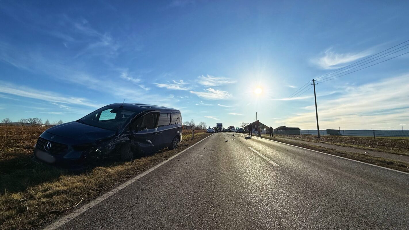 Der folgenreichste der drei Unfälle war der dritte: Auf der Kreisstraße zwischen Sulgen und Aichhalden stießen zwei Minivans frontal zusammen. Nach ersten Informationen an der Einsatzstelle wollte die Fahrerin eines der Wagen, eines Mercedes, einem am Straßenrand abgestellten Auto ausweichen und fuhr damit direkt in den Gegenverkehr. Ein entgegenkommender Fahrer eines Volkswagens konnte nicht mehr ausweichen und prallte mit seinem Fahrzeug wuchtig in den Mercedes. Der Fahrer des Volkswagens, ein Senior, wurde dabei so schwer verletzt, dass er mit einem Rettungshubschrauber in eine Klinik gebracht werden musste. Auch die Fahrerin des Mercedes erlitt schwere Verletzungen.