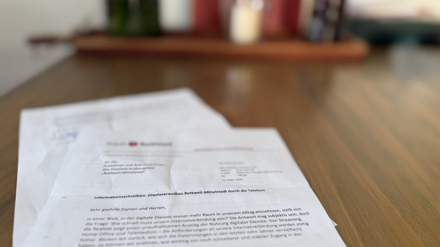 Vor wenigen Tagen fand sich in vielen Briefkästen im Rottweiler Stadtteil Mittelstadt ein offiziell aussehendes Schreiben: Absender die Stadt Rottweil, Stabsstelle Wirtschaftsförderung. Inhalt: Die Telekom baut Glasfaser aus, der Hausanschluss ist kostenlos – aber nur bis zum 29. Juli 2026. Wer die Frist verpasst, zahlt 999 Euro. Und am Ende der Aufruf: „Nutzen Sie daher die Gelegenheit und profitieren auch Sie vom Glasfaserausbau in unserer Rottweiler Mittelstadt.“ Holla – wirbt da jemand ganz ungeniert für die Telekom? Und lässt Mitbewerber ganz unbekümmert außer Acht?