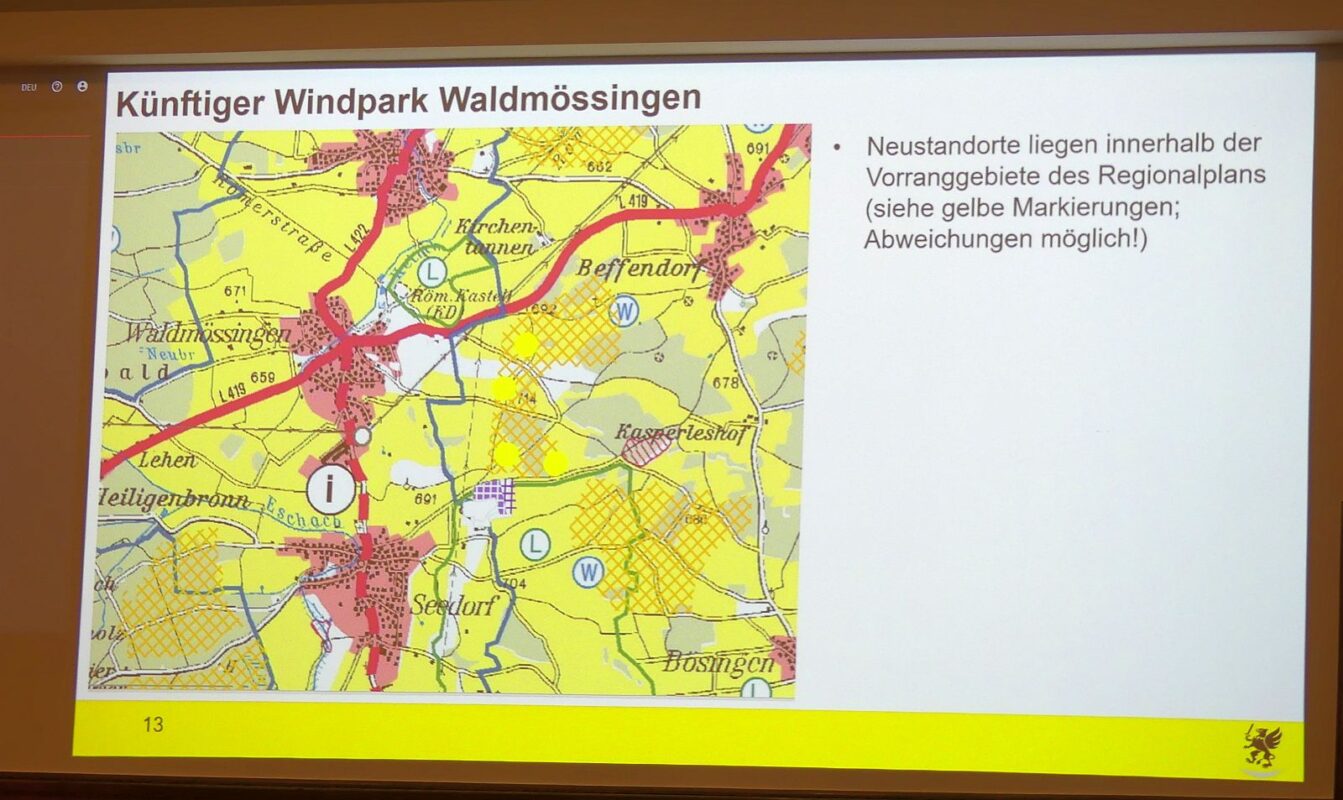 Thomas Brugger (CDU) nannte den Ausbau wichtig. Es gebe in Waldmössingen auch keinen größeren Widerstand dagegen, wahrscheinlich weil man schon seit gut 20 Jahren mit den Anlagen dort leben. Es sei wichtig, das Verfahren weiter zu treiben und die offenen Themen wie Kehlenstraße zu berücksichtigen. Eisenlohr versicherte abschließend, die Verwaltung habe „aus dem Feurenmoos gelernt“ und beispielsweise die Forderung nach einer Selbstlöscheinrichtung aufgenommen.