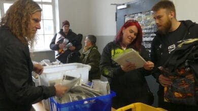 Immer noch enorm viele T-Shirts und andere Erinnerungsstücke des legendären Bang-Your-Head-Festivals lagern in einem Raum in der Schramberger H.A.U.. Bei…