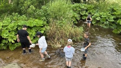 Forschen im Freien: Die Klasse 5d entdeckt die Wasserwelt mit dem Ökomobil
