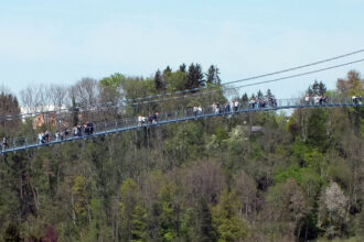 Rottweil – Leicht wirkt sie, fast schwebend spannt sich die Fußgänger-Hängebrücke Neckarline durch den Raum. Im Hintergrund: der markante Testturm, dessen gedrehte Silhouette längst zum Wahrzeichen der Stadt geworden ist.…