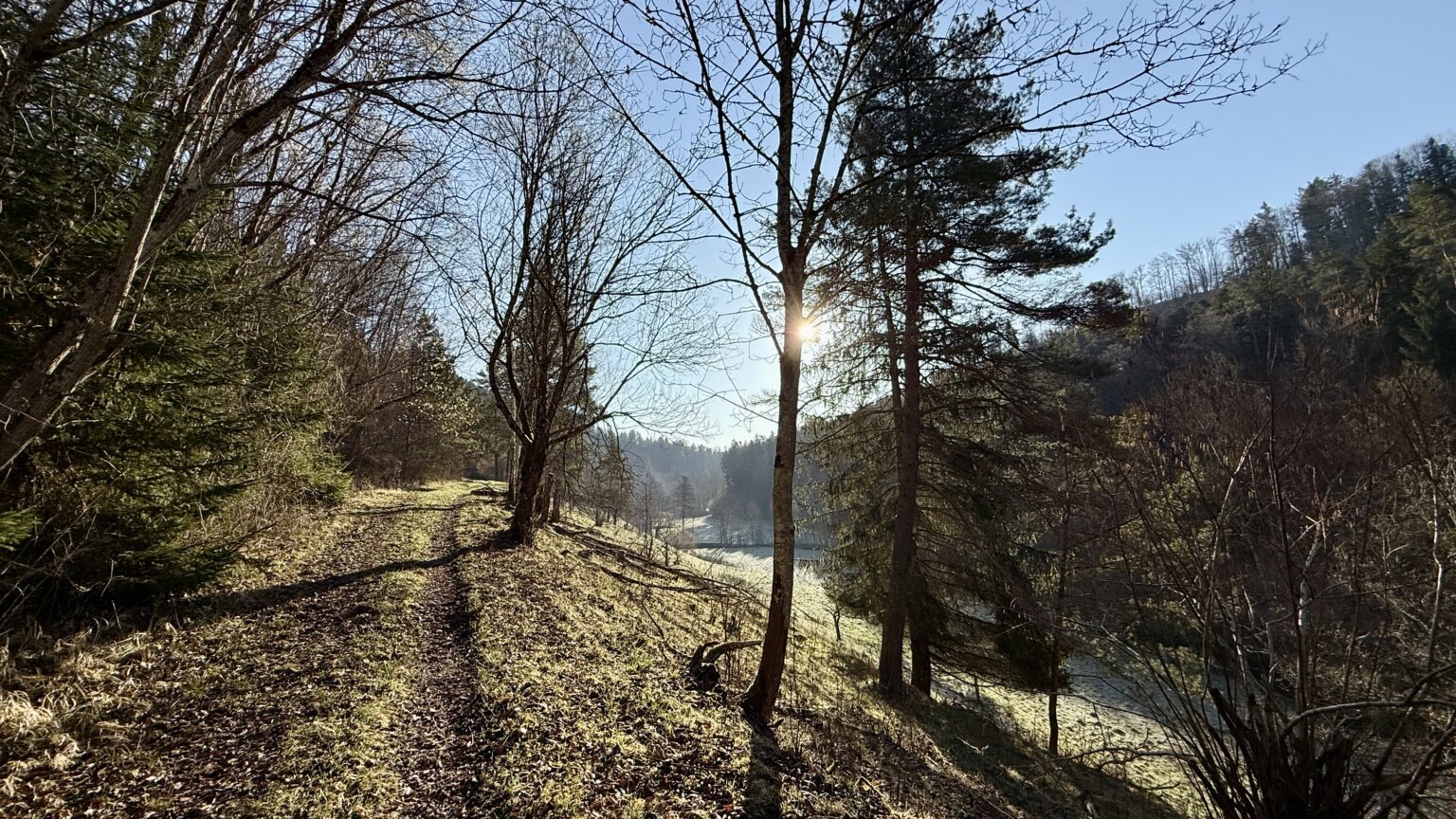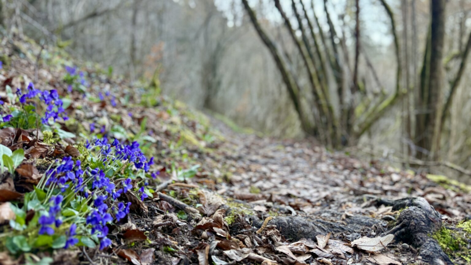 Ein schmaler, teils wurzeliger Pfad schlängelt sich teils direkt, teils deutlich oberhalb des Flusslaufs entlang. Links und rechts ragen steile Felswände auf, die von Moosen und Farnen bewachsen sind. Wer genau hinsieht, entdeckt an den Hängen und in den lichten Laubwäldern jetzt die ersten Frühlingsboten: Zarte Märzenbecher und Schneeglöckchen recken ihre weißen Köpfchen der Sonne entgegen und verwandeln den Waldboden stellenweise in ein kleines Blütenmeer.