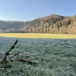 Wieder unten im Tal passiert man die idyllisch gelegene Ramsteiner Mühle, bevor der Weg das enge Tal verlässt und hinauf zum Hofgut Ramstein führt. Über weite Wiesen und Felder, die nun in frischem Frühlingsgrün erstrahlen, geht es mit herrlichen Ausblicken über das Neckartal zurück zum Ausgangspunkt in Epfendorf.