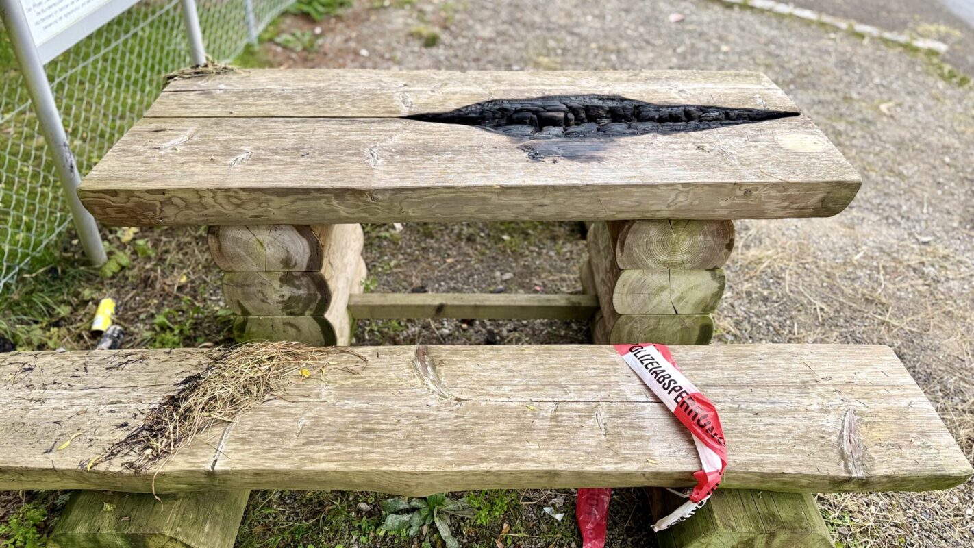Picknicktisch angezündet – Feuerwehr löscht, Polizei ermittelt