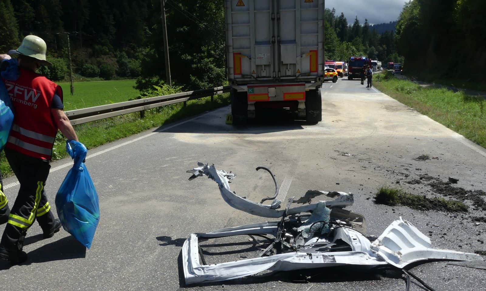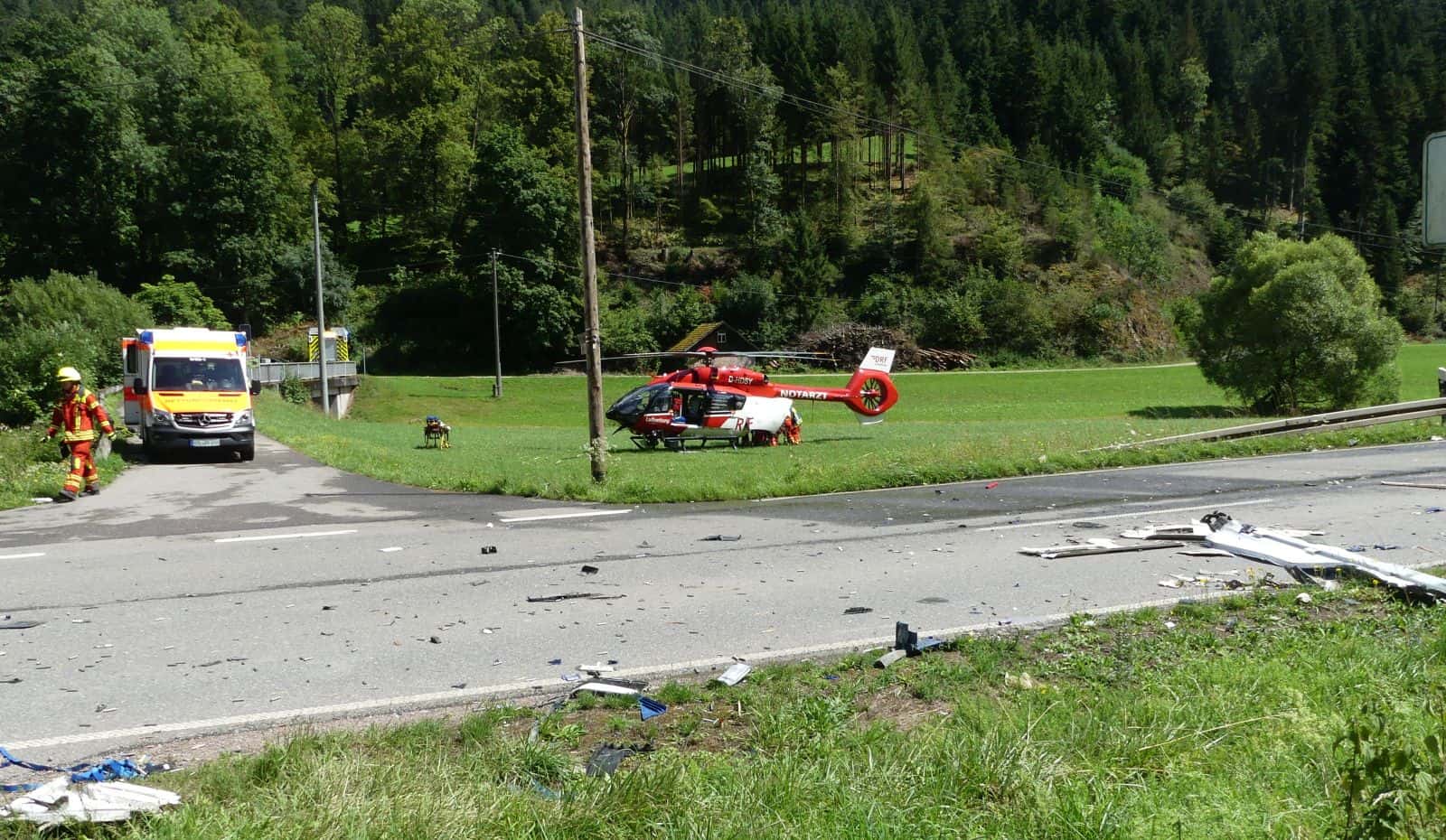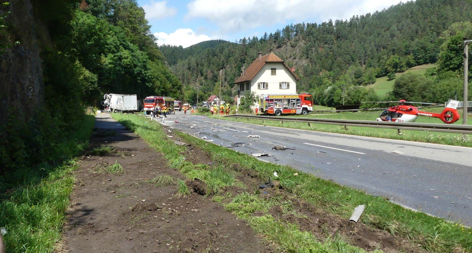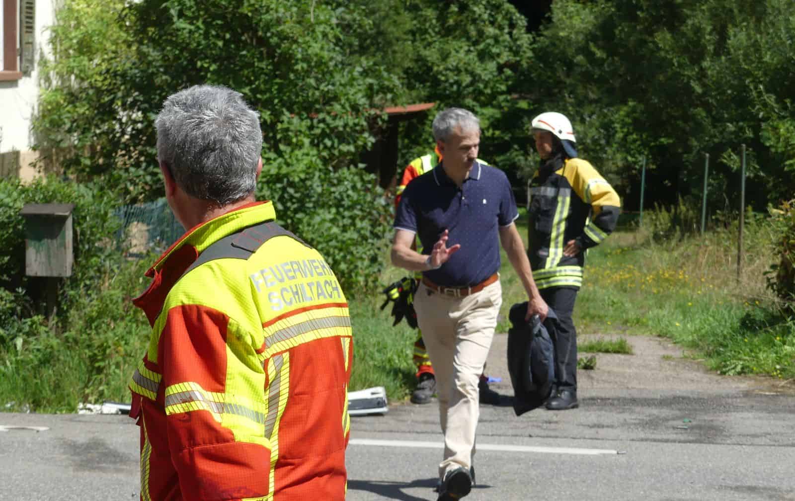 Vor Ort im Einsatz waren die Feuerwehren aus Schiltach und Schramberg. Daniel Sauter leitete den Einsatz zusammen mit dem Schiltacher Kommandanten Markus Fehrenbacher. Das DRK war mit mehreren Rettungsfahrzeugen auch aus dem Ortenaukreis vor Ort. Zum Abtransport der Verletzten waren die Rettungshubschrauber Christoph 66 und 11 auf einer Wiese neben der Straße gelandet. Am Unfallort war auch Schiltachs Bürgermeister Thomas Haas.
