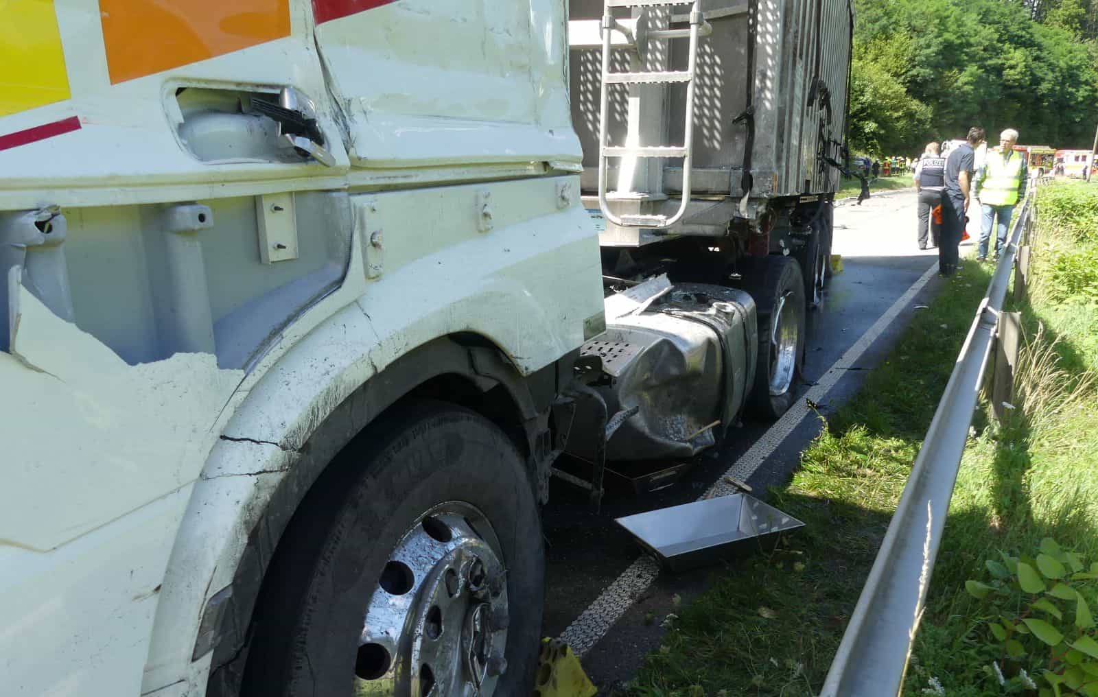 Ein entgegenkommender 38-jähriger Lenker eines Lkw versuchte noch auszuweichen, die Zugmaschinen kollidierten jedoch jeweils auf der Fahrerseite. Der Lkw des 43-Jährigen wurde anschließend abgewiesen und prallte frontal auf einen Felsen. Nachdem der 38-Jährige versucht hatte, auszuweichen, kam er vom rechten Bankett nach links auf die Gegenfahrbahn und kollidierte mit einem Mercedes Kleintransporter eines 29 Jahre alten Mannes.
