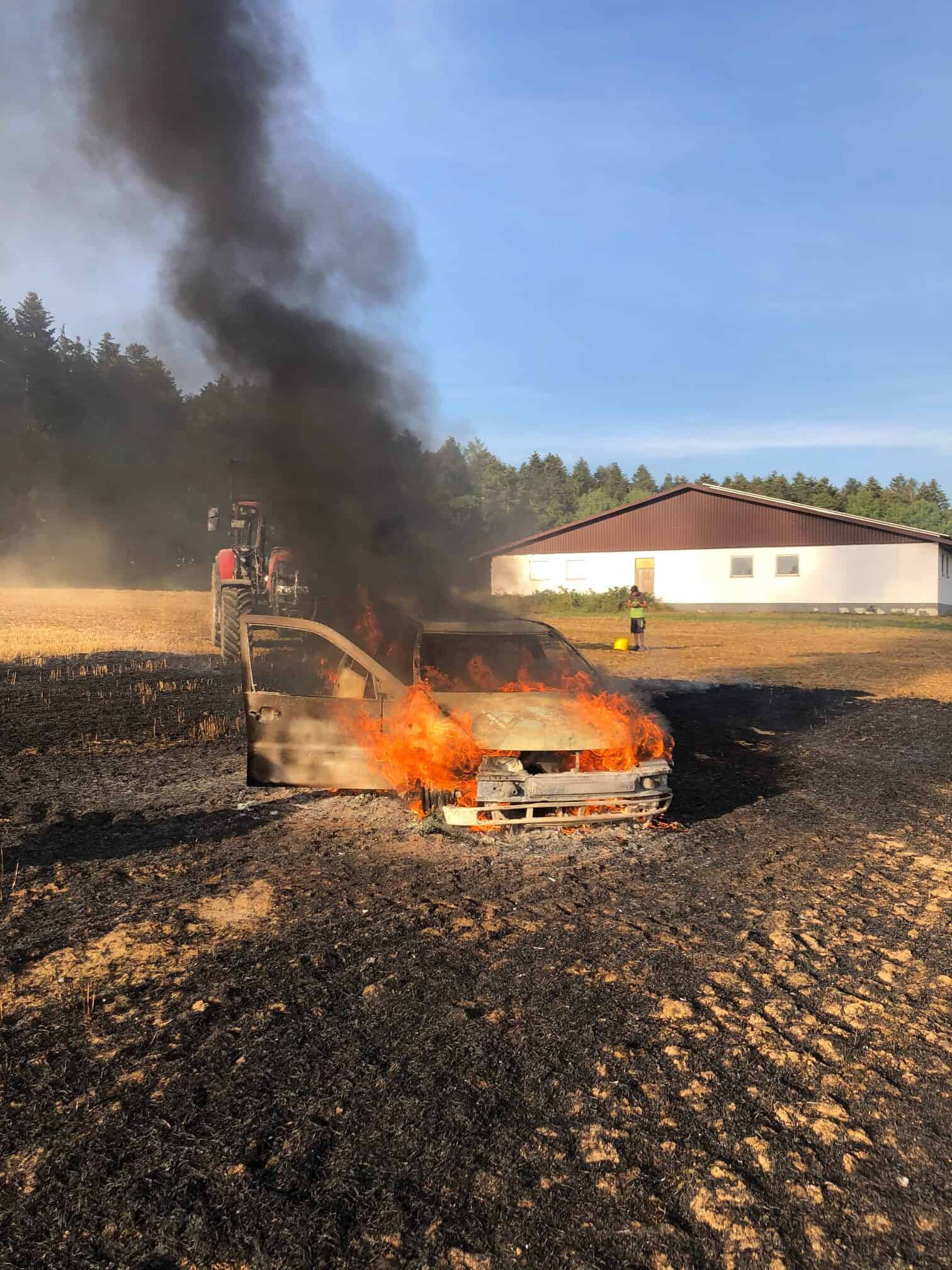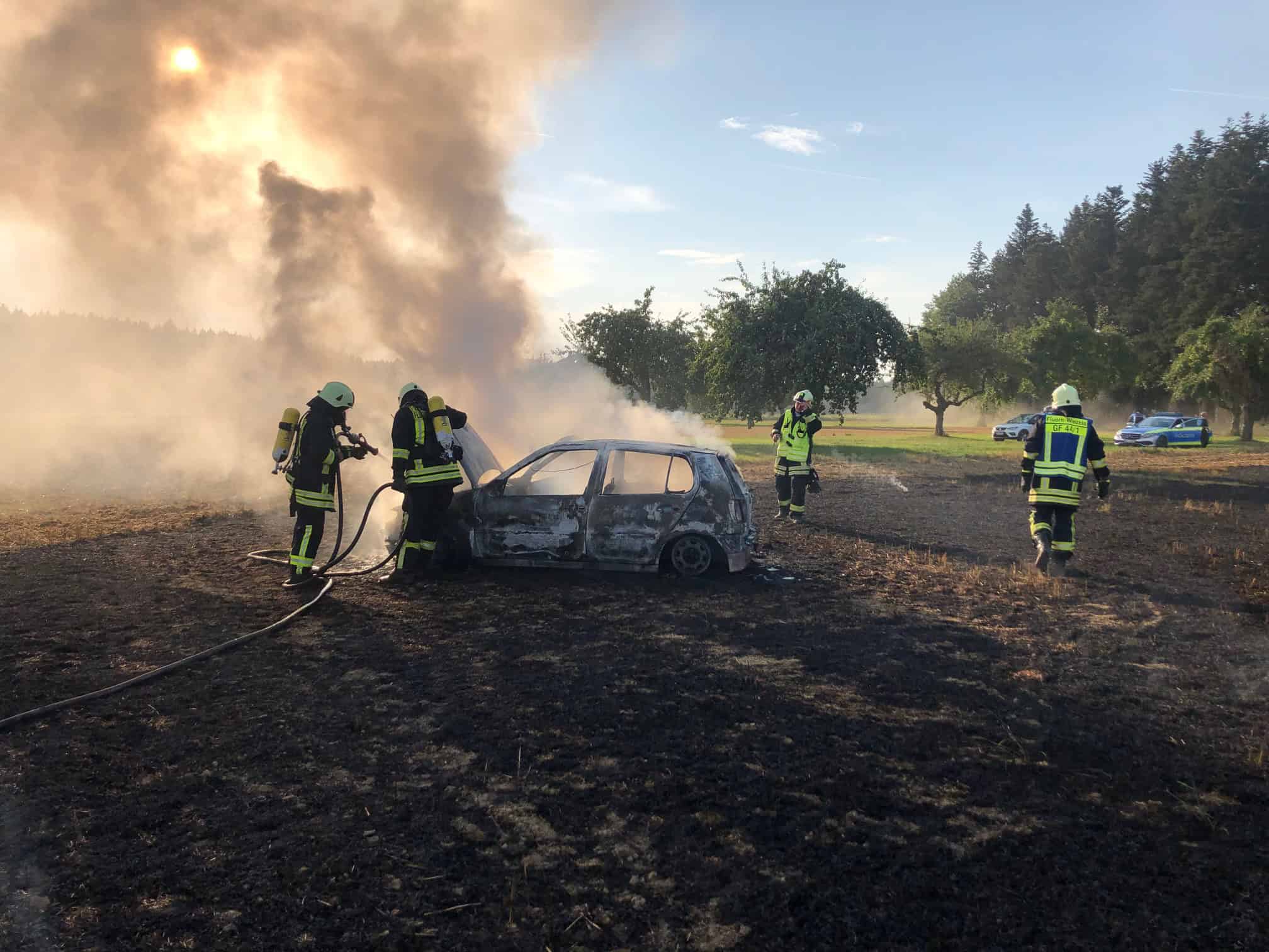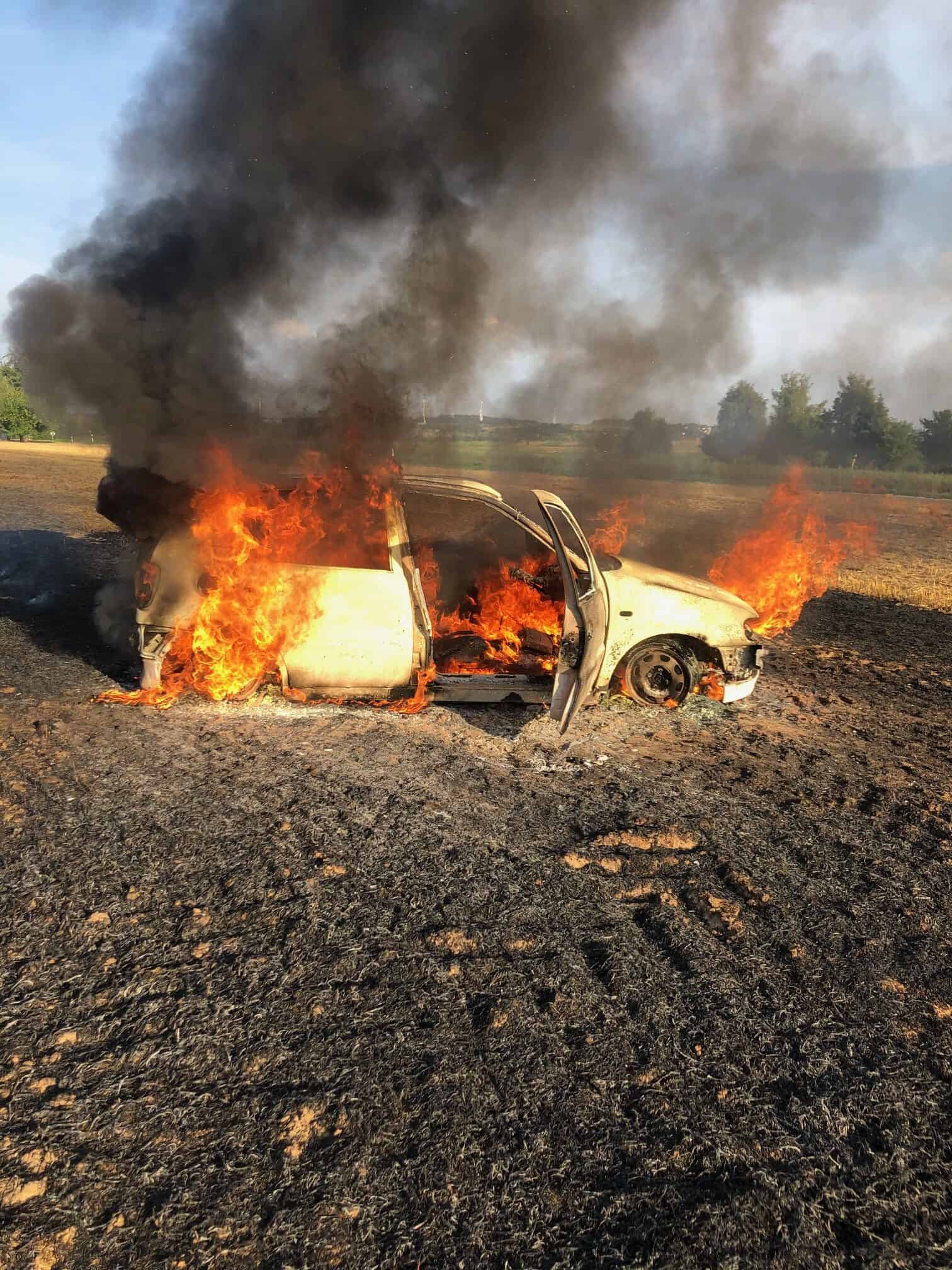 Winzeln: Auto brennt auf Stoppelfeld