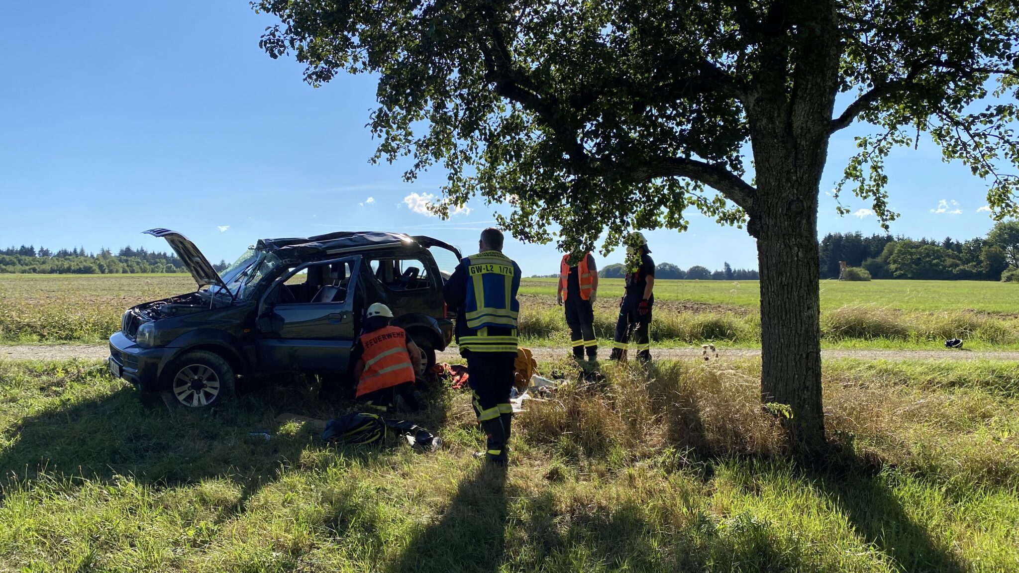 Ein Suzuki Jimny ist bei offenbar schneller Fahrt von einem Feldweg, der von der B 27 weg führt, abgekommen. Der Wagen hat sich dann in einem Graben überschlagen.