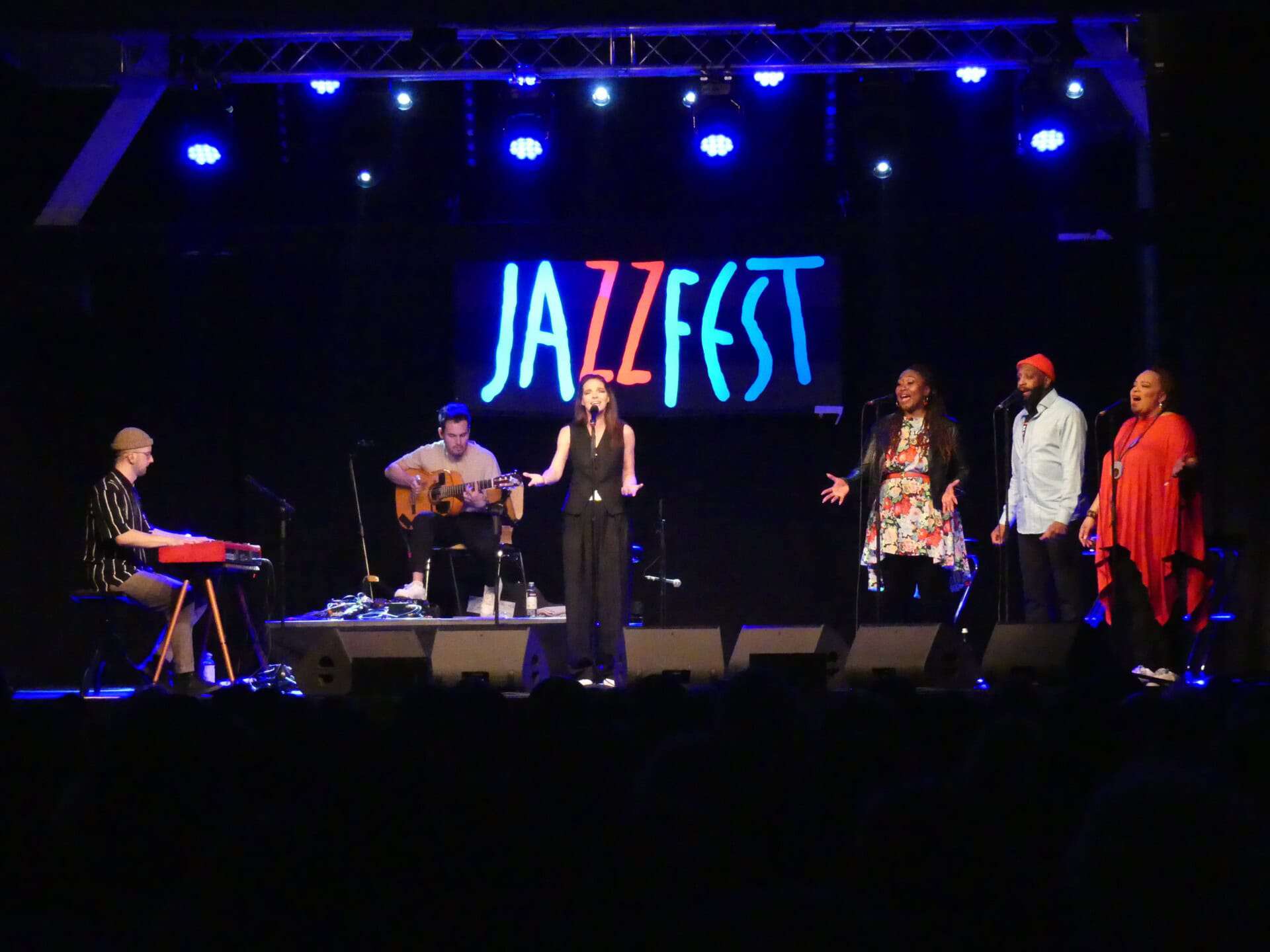 Den Songs des letzten Albums tut die akustische Entkleidung übrigens mehr als gut, Gitarre und Keyboard reichen den Stimmen als musikalische Umrahmung völlig und schälen aus jedem Stück heraus, was auf dem teils überproduzierten Album wegzurutschen droht. Das kommt gut an, wie auch die eingestreuten Berichte von der Stadtbesichtigung – „nur den Turm“ haben sie nicht geschafft, „der sieht irgendwie aus wie ein Spargel.“ Was ja ganz gut zur Jahreszeit passt. Da geht die Saison erst los, genau wie beim Jazzfest…