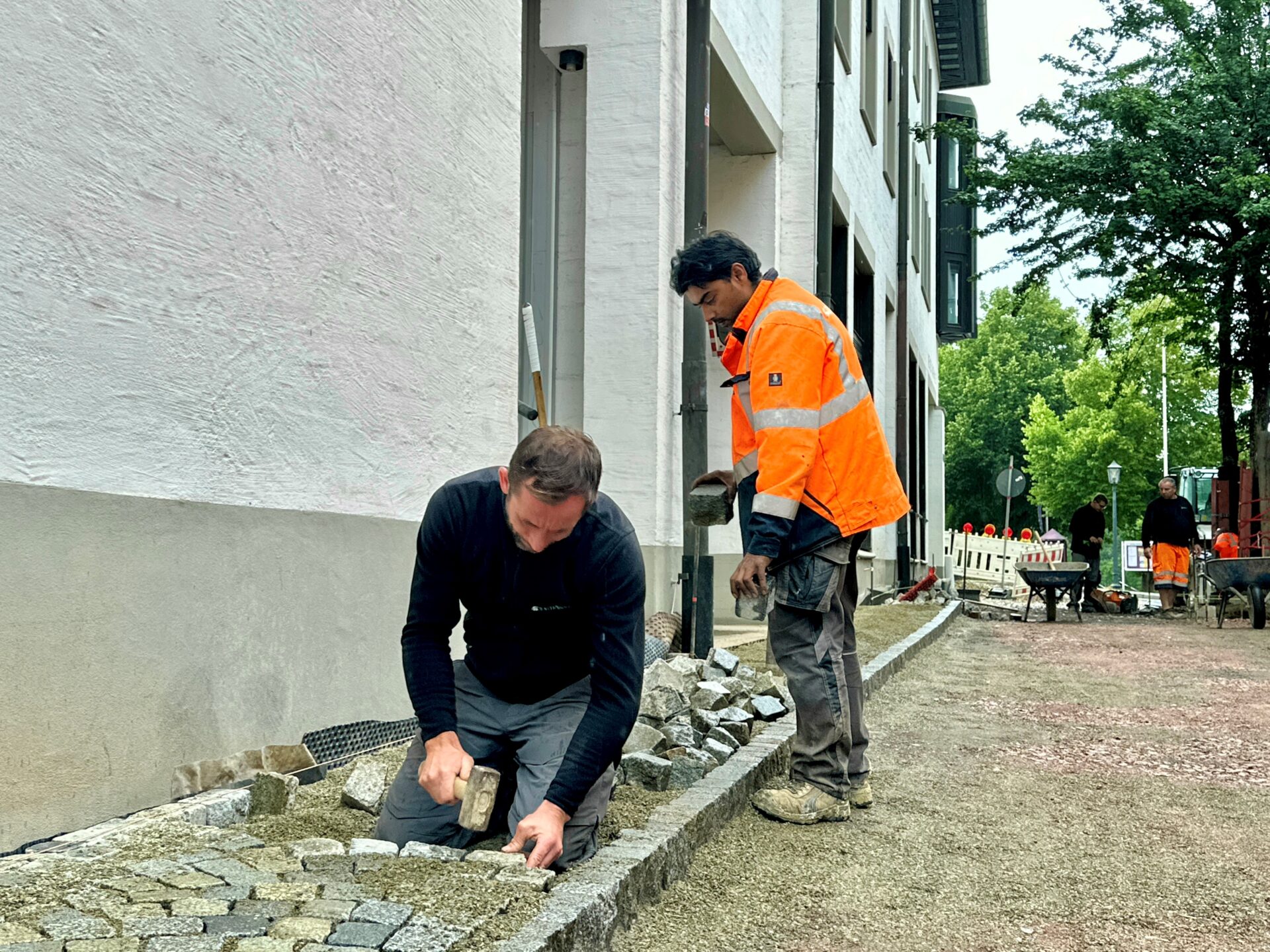 In der Schul- und Pfarrgasse sind die Rinnen und Seitenpflasterungen schon sehr weit fortgeschritten, so dass in der ersten Septemberhälfte dort die Straßenflächen asphaltiert werden können. Mit der Fertigstellung der Schulgasse rechnet die Abteilung Tiefbau bis Ende September, die Pfarrgasse soll bis Ende Oktober fertig sein.