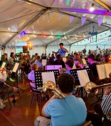Trotzdem sind an diesem Abend unter der Woche einige hundert Besucher in die Alte Stallhalle gekommen. Auf der Bühne: das 1988 von Peter Herbolzheimer gegründete Bundesjazzorchester (er selbst war schon 2002 in Rottweil), bekannt als Talentschmiede für zukünftige Jazzmusikerinnen und -musiker. 39 junge Musikerinnen und Musiker zählen aktuell zum „Bujazzo“, ihnen zur Seite gesellen sich in Rottweil neben der üblichen Technik zudem kiloweise Noten.