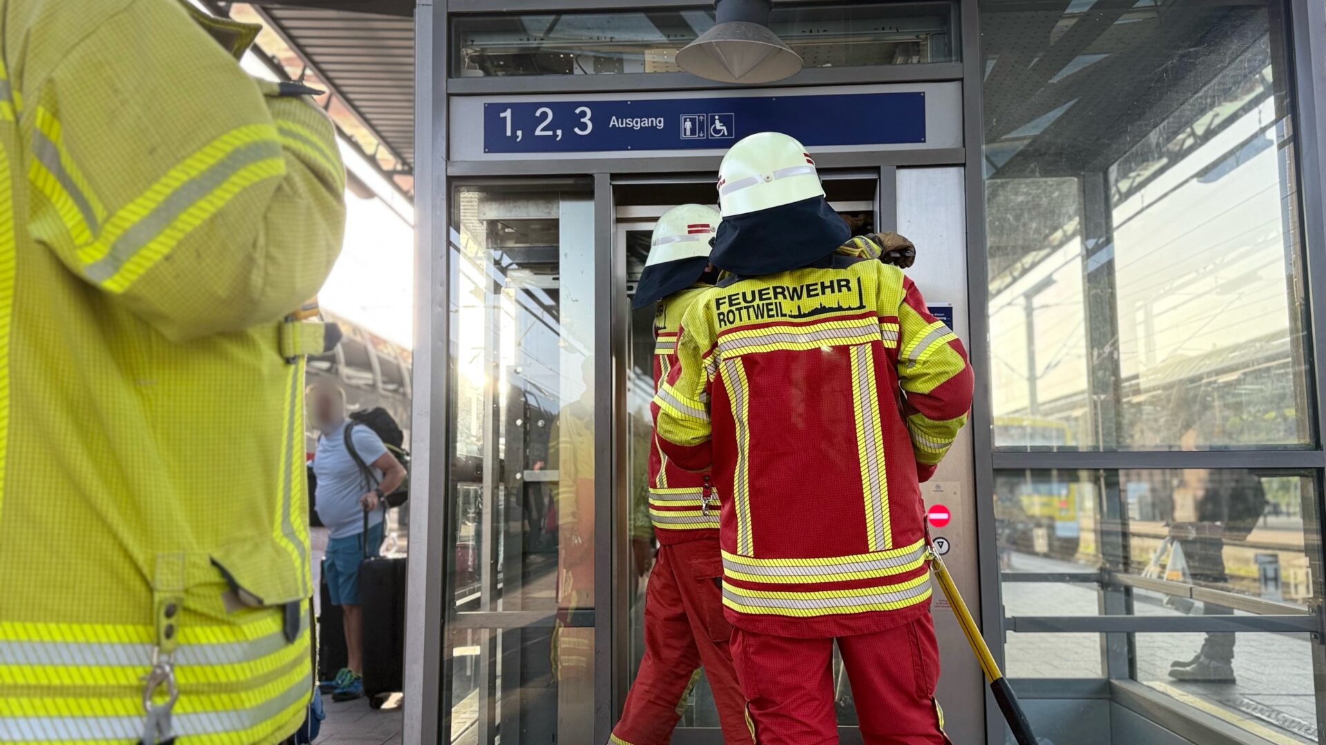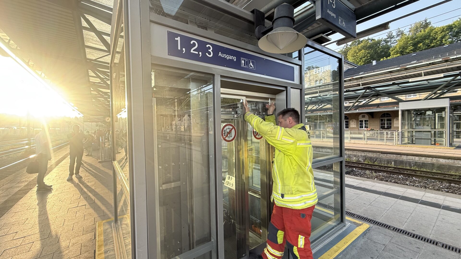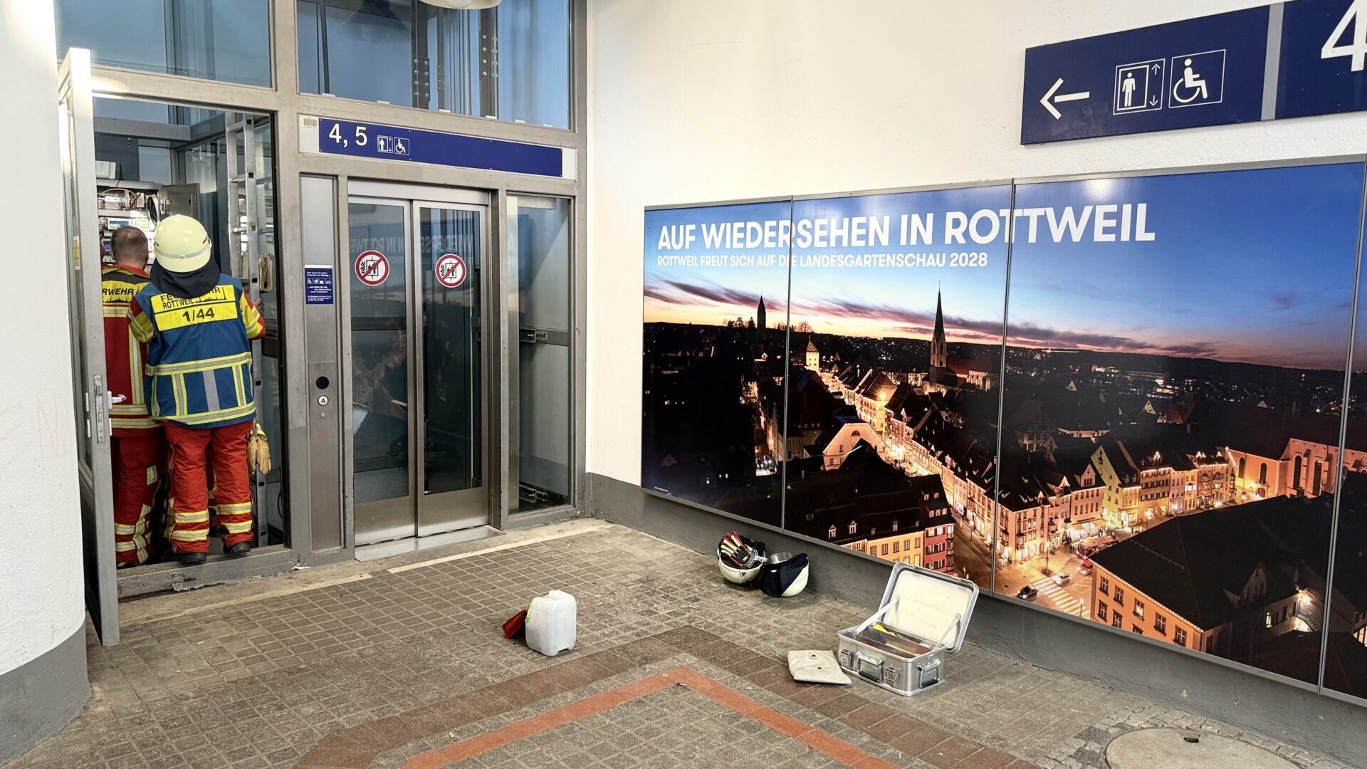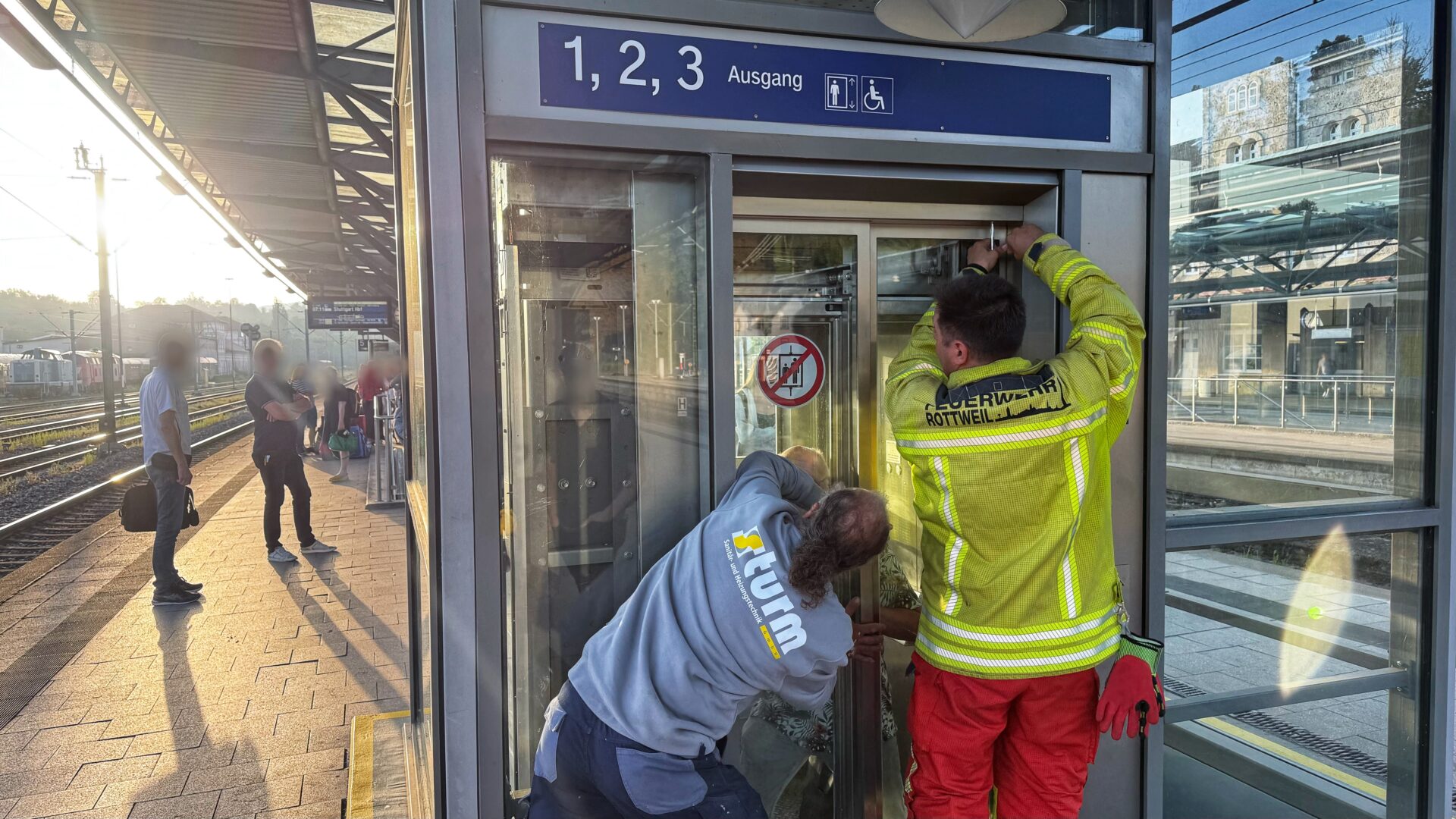Was für eine Reise: Ein Mann, der eigentlich weiter Richtung Stuttgart wollte, einen Trip mit vier Umstiegen vor sich hatte, blieb im Aufzug zum Ferngleis des Rottweiler Bahnhofs stecken. Zwei mögliche Verbindungen verpasste er dadurch. Er nahm es gelassen, freute sich sichtlich, dass ihm Hilfe zuteil wurde.