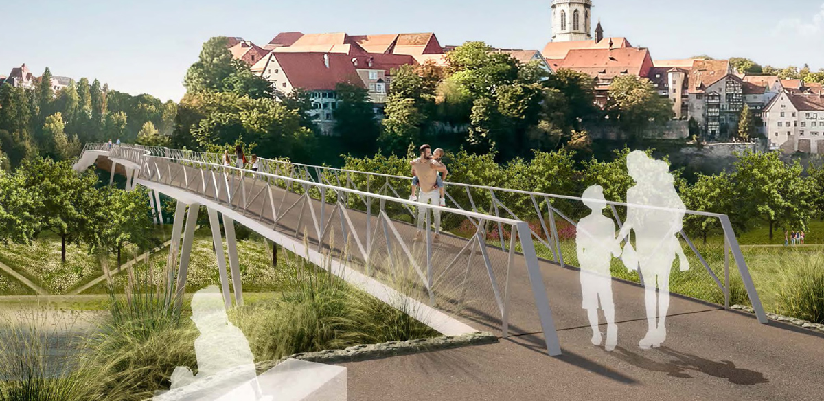 Der Bau der Brücke über den Neckar, die das Gartenschaugelände für Fußgänger und Radfahrerinnen mit Göllsdorf verbindet, soll noch in diesem Monat beginnen. So der Plan. Und beide Brücken, auch die am ehemaligen ENRW-Gelände, sollen, ist ja Jahr der Brücken, noch in diesem Jahr fertig werden. Die Gartenschaubrücke, die den Stadtgraben mit dem Panoramaweg verbindet, soll ab Mai erstellt werden. Wobei das wiederum auf die Bahn ankommt, deren Gleise ja überbrückt werden, so dass es auch später werden könnte, sagte Ruf. Er rechnet aber fest mit einem Baubeginn noch vor der Sommerpause.