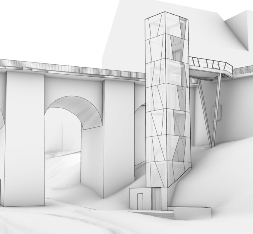 Der Weg durch den Stadtgraben nach oben kann nicht barrierefrei sein. Aber ein Aufzug wird nicht nur Menschen mit Behinderung und alten Menschen den Weg in die Innenstadt ermöglichen. Dieser Aufzug in die Grafengasse soll ab Juni gebaut werden. Etwas weiter unten plant die Stadt eine Stahltreppe in die Grafengasse.