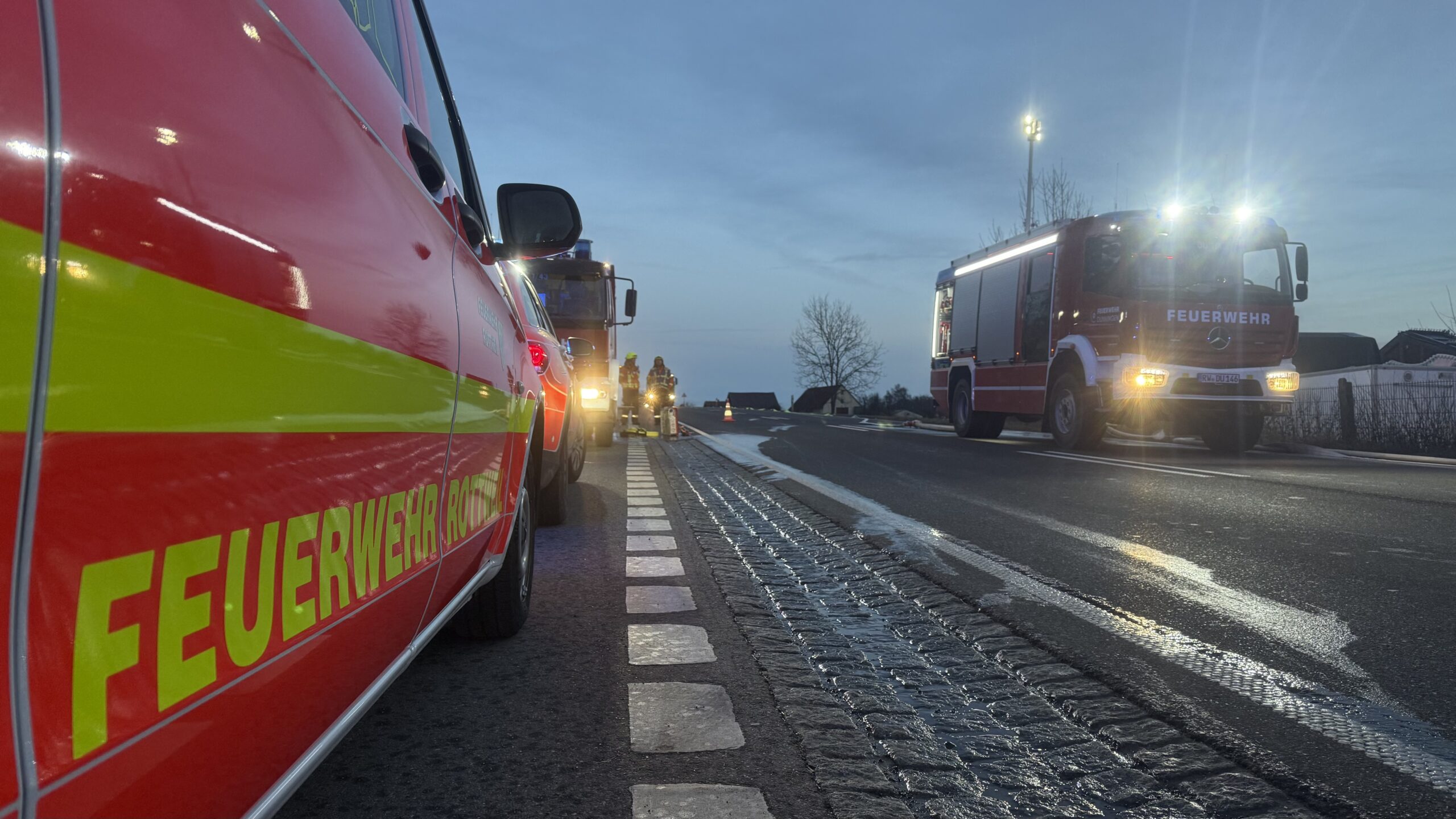 Zunächst war das Feuer auf kleiner Stufe gemeldet worden. Da das Wohnmobil aber direkt an einem Wohngebäude steht und schließlich im Vollbrand stand, erhöhte die Leitstelle das Alarmstichwort auf B4, Gebäudebrand. Das Wohnmobil brannte aus, das Gebäude konnte offenbar durch eine Riegelstellung geschützt werden und wird nun kontrolliert, das erklärte der Rottweiler Feuerwehrsprecher Patrick Kohl.