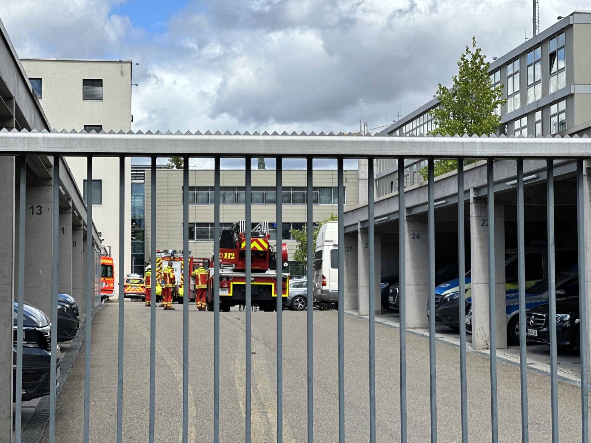 Dass kein Brand ausgebrochen war, war offenbar rasch klar, denn die angerückten Kräfte hielten sich in Bereitschaft, während drinnen die Erkundung lief. Hinweise auf ein Feuer gab es damit zu keinem Zeitpunkt. Entsprechend machte sich die Besatzung der Drehleiter bald wieder auf zurück zum Gerätehaus. Die Mitarbeiterinnen und Mitarbeiter der Polizei konnten das Gebäude wieder betreten.