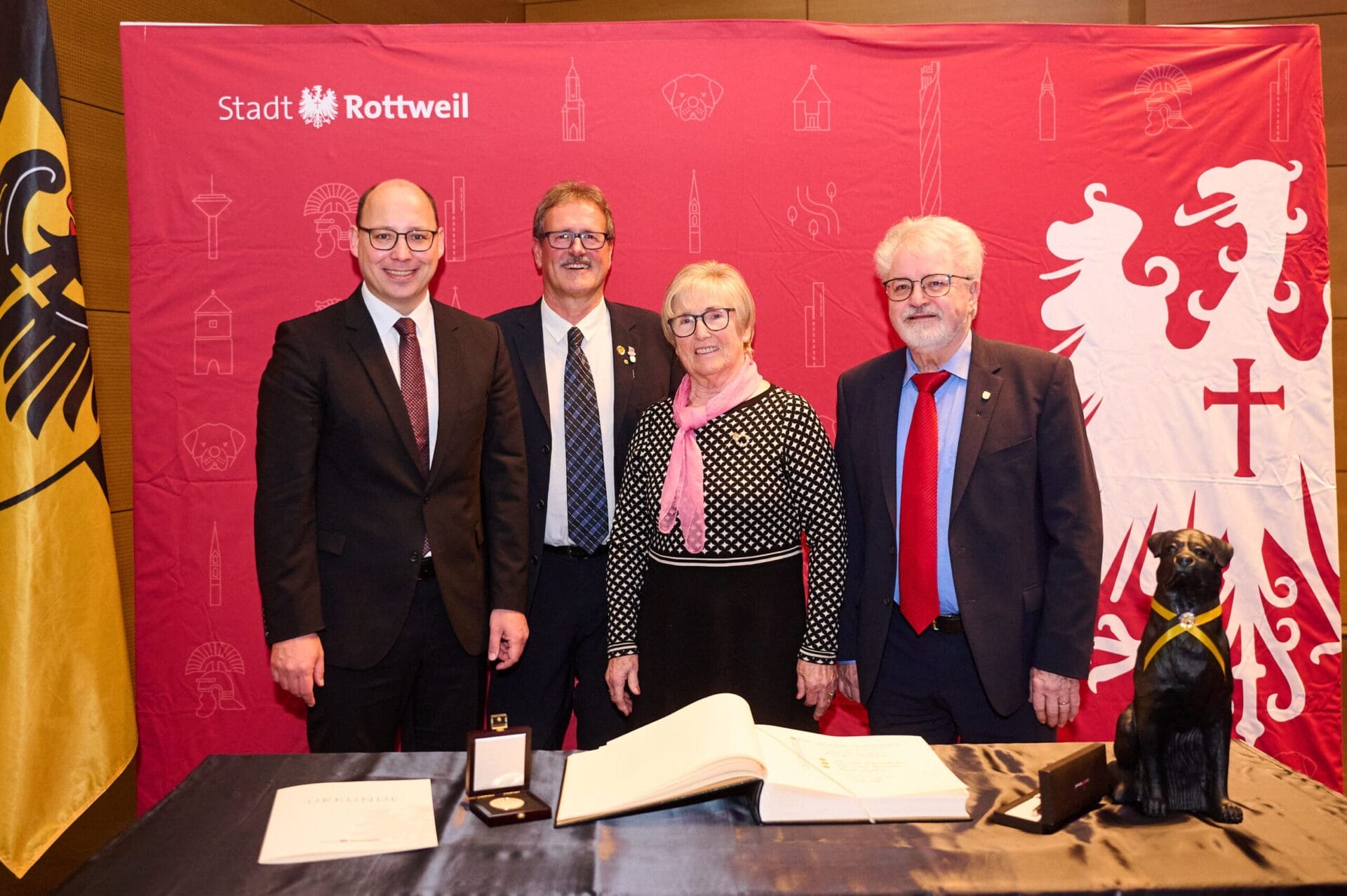 Drei nach den Worten des Oberbürgermeisters herausragende Persönlichkeiten haben am Sonntag die Bürgermedaille der Stadt Rottweil erhalten. Dies sei „mehr als nur eine Auszeichnung. Sie ist ein Zeichen des tiefen Dankes, ein Symbol unserer Anerkennung und Wertschätzung“, sagte der OB. Geehrt würden damit Persönlichkeiten, „die weit über das übliche Maß hinaus Verantwortung für unsere Stadt und ihre Menschen übernommen haben.“