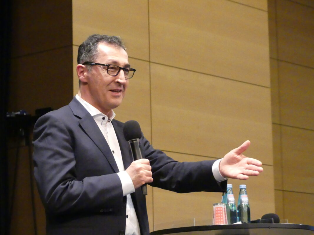 Özdemir schafft es auch, den noch amtierenden Ministerpräsidenten Winfried Kretschmann höflich und anständig zu loben. Er lobt den „baden-württembergischen Weg“, der für Dialog, Kompromissfindung und Zielorientiertheit stehe. Hat seinen eigenen Kopf, will aber auf der bisherigen Politik aufsetzen. er möchte aber noch mehr Tempo machen, etwa beim Windkraft- und Netzausbau.