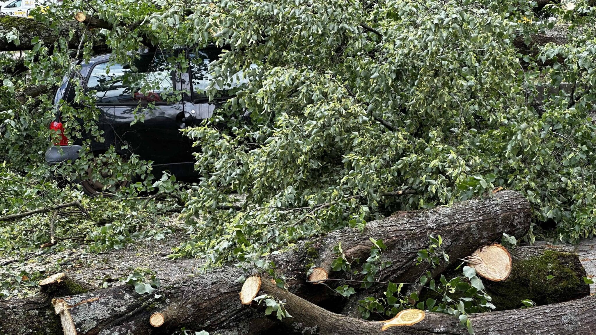 An mindestens vier Autos entstanden laut Polizei durch umgestürzte Bäume oder heruntergefallene Äste teilweise erhebliche Beschädigungen.