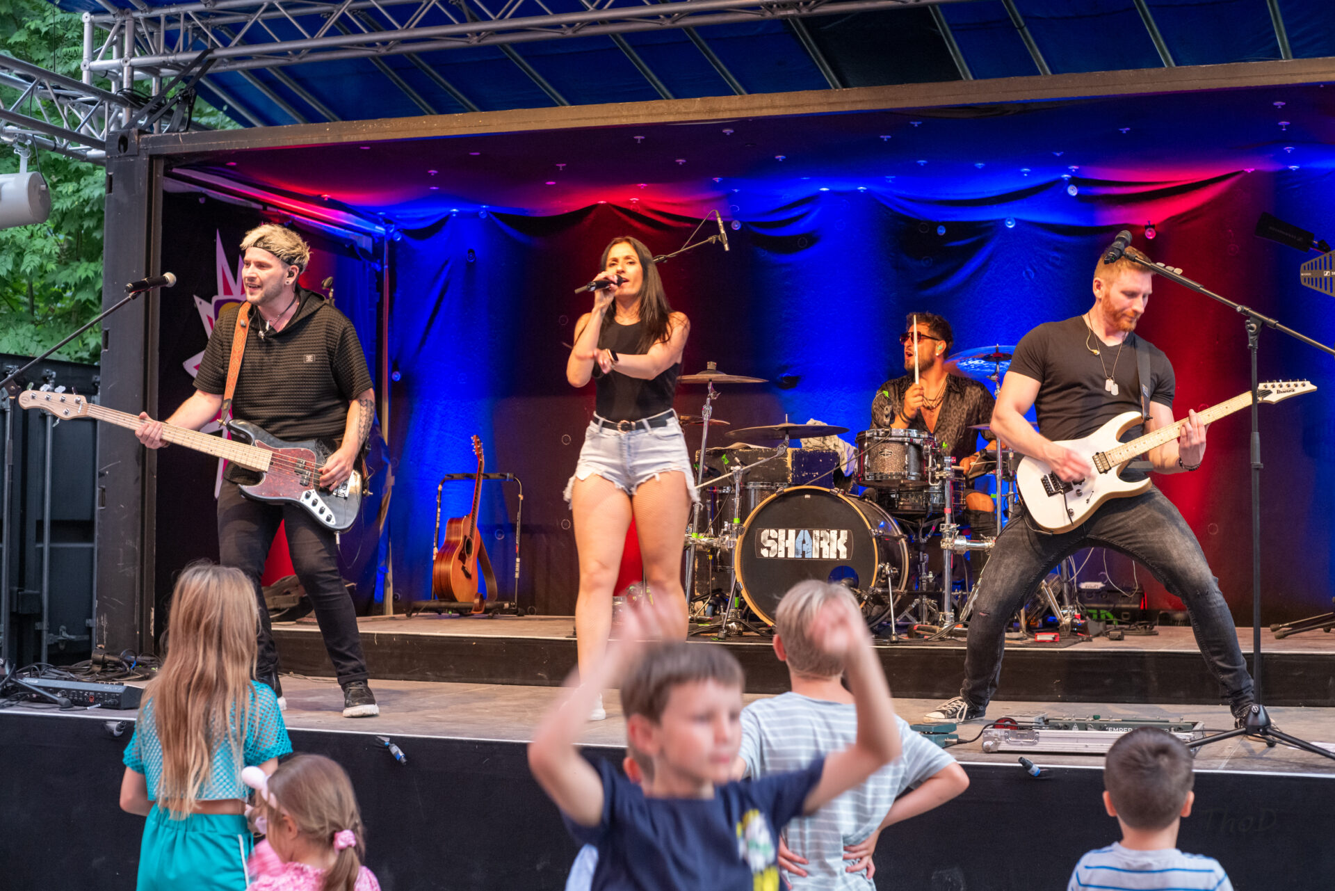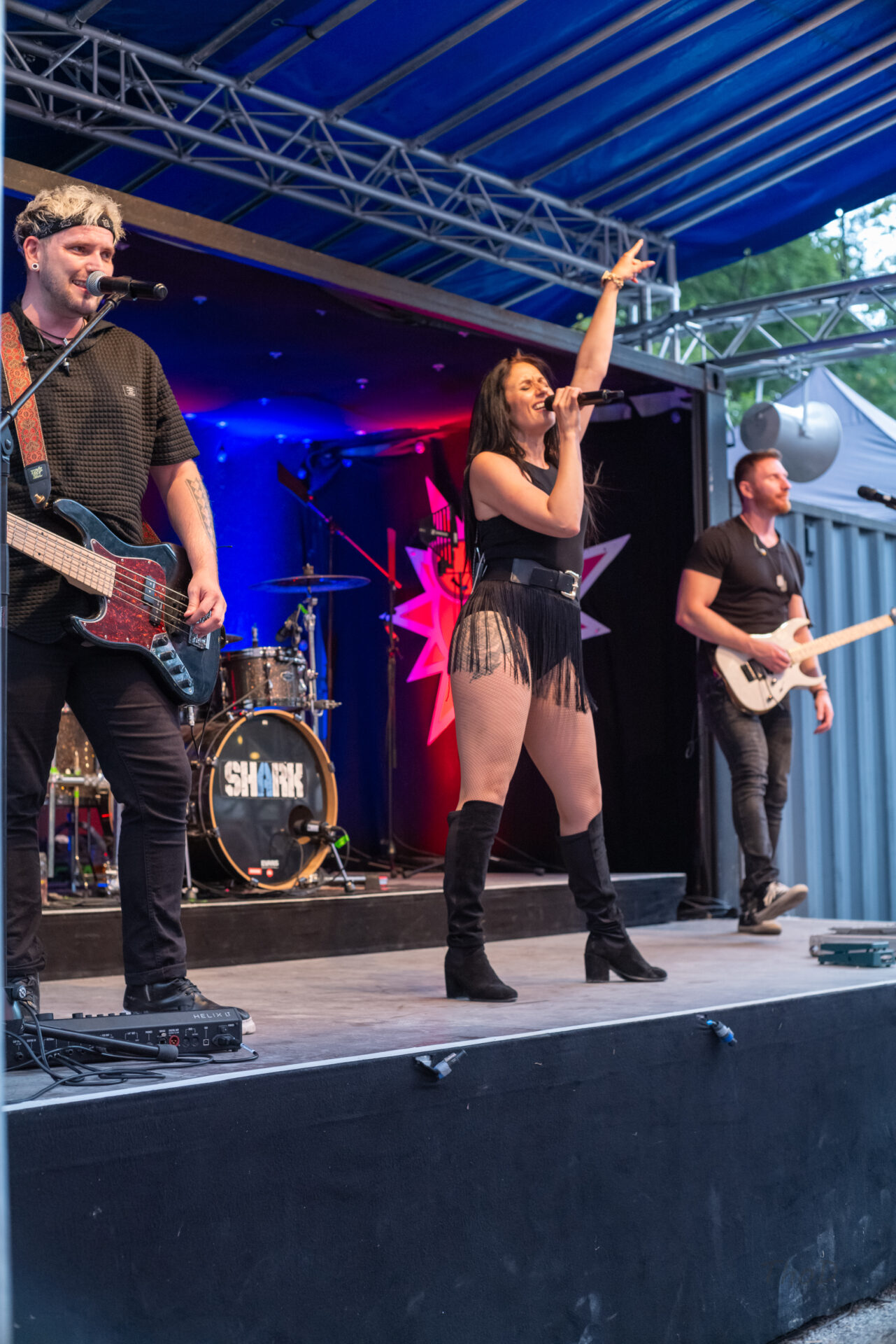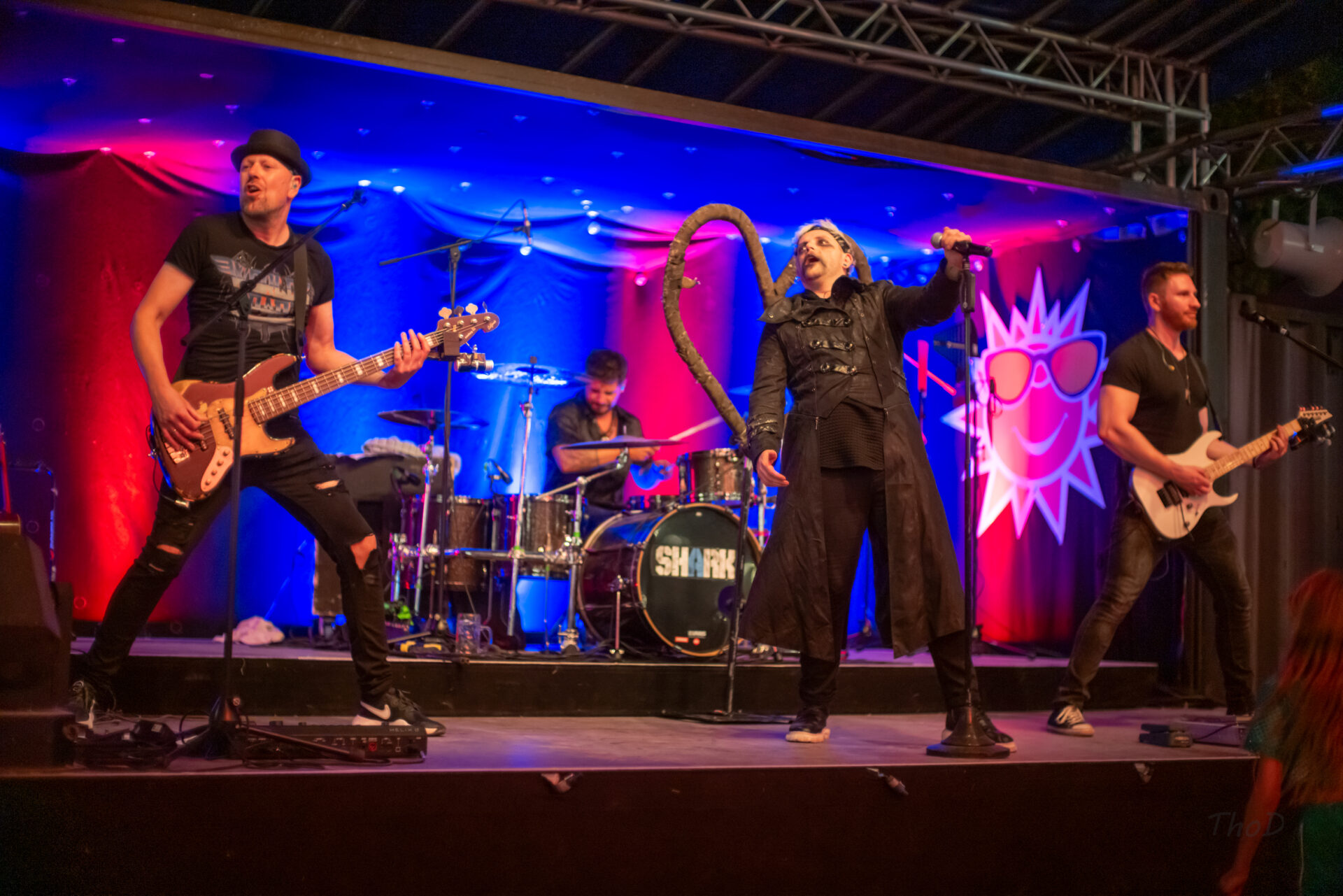 Typisch Ferienzauber Rottweil: eine gute Coverband, ein feierfreudiges Publikum aller Altersgruppen, eine super Atmosphäre unter dem Wasserturm beziehungsweise dem großen Schirm. Ein letztes Mal gab es diese Zutaten für die Abendparty des Rottweiler Sommerfestivals 2025 am Samstagabend mit der Coverband „Shark“. Unser Fotograf Thomas Decker vom Team Ralf Graner Photodesign war dabei. Wir bringen hier seine schönsten Bilder, beginnend mit Ferienzauber-Macher und Ansager Reiner „Archie“ Armleder. Heute geht das Festival zu Ende (mehr zum heutigen Programm hier).