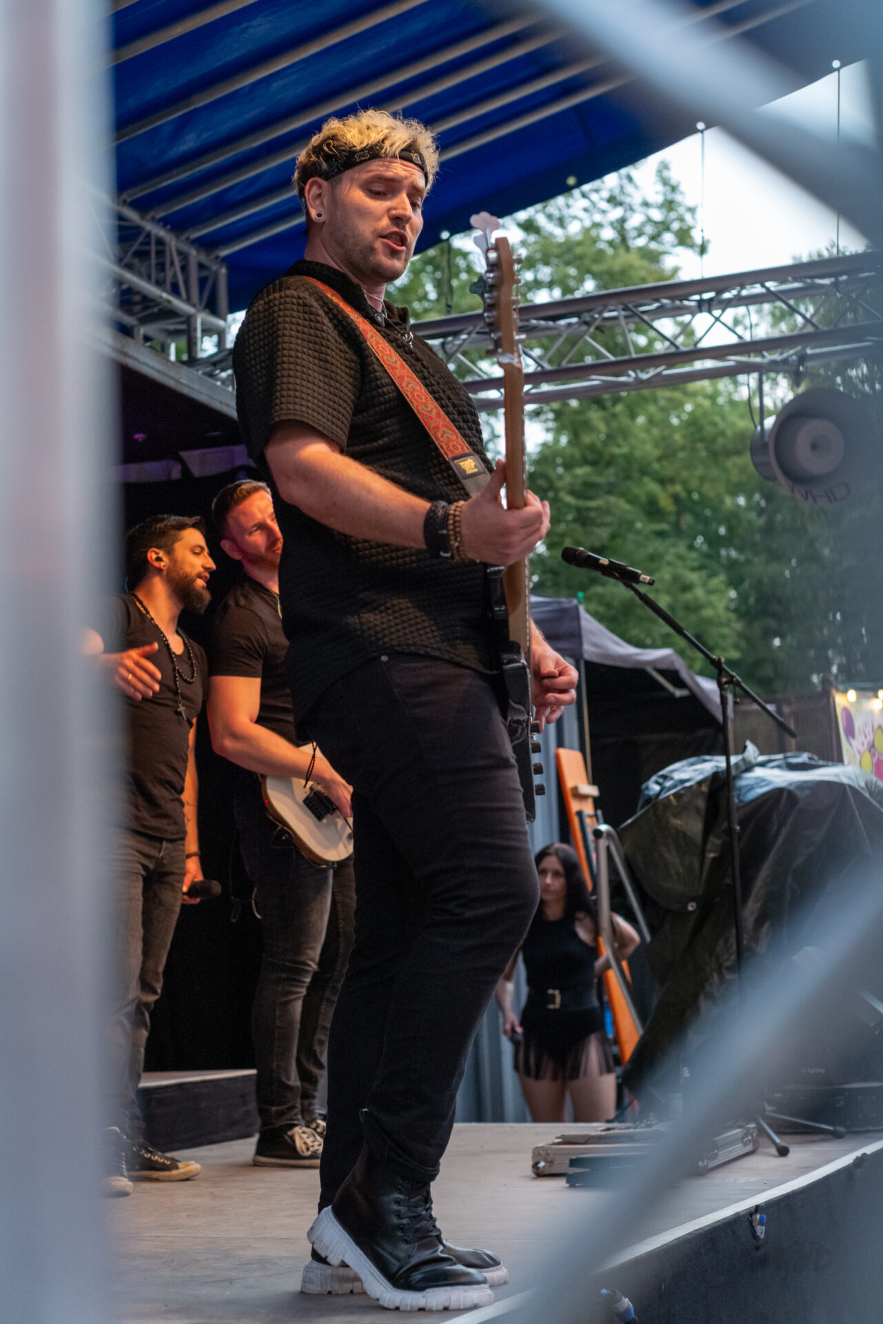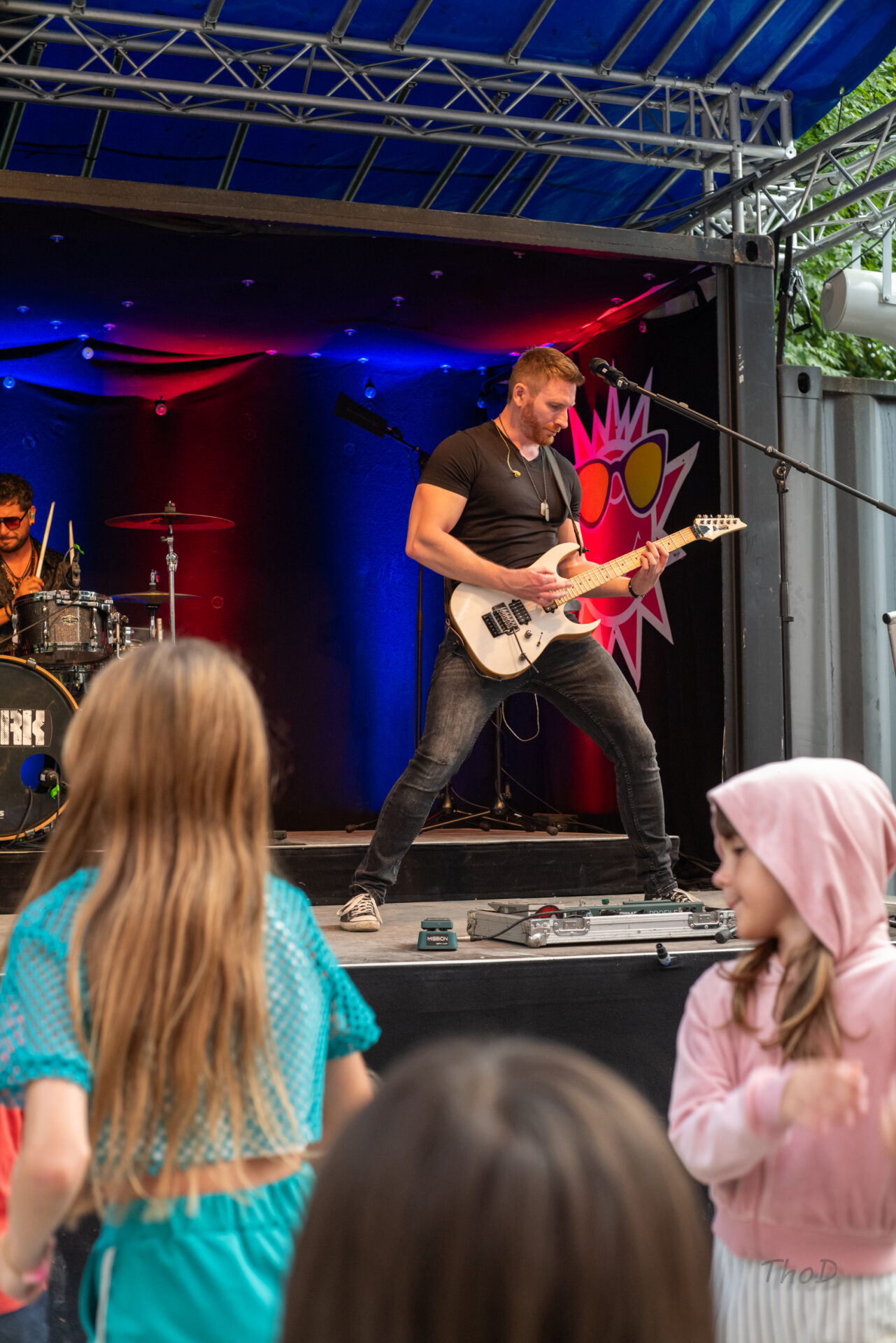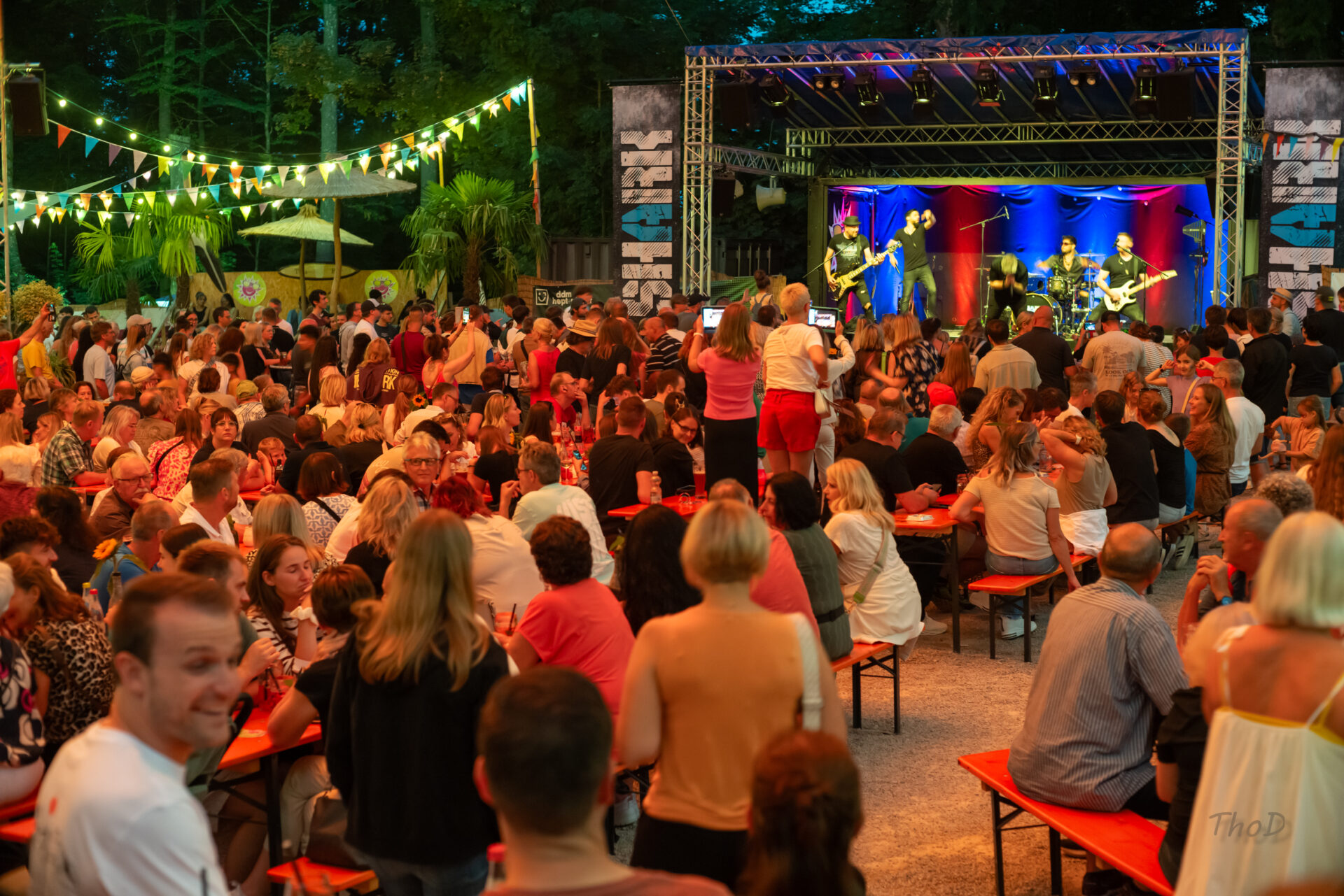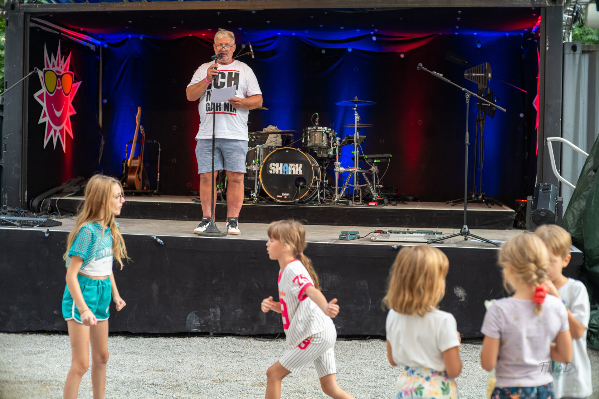 Typisch Ferienzauber Rottweil: eine gute Coverband, ein feierfreudiges Publikum aller Altersgruppen, eine super Atmosphäre unter dem Wasserturm beziehungsweise dem großen Schirm. Ein letztes Mal gab es diese Zutaten für die Abendparty des Rottweiler Sommerfestivals 2025 am Samstagabend mit der Coverband „Shark“. Unser Fotograf Thomas Decker vom Team Ralf Graner Photodesign war dabei. Wir bringen hier seine schönsten Bilder, beginnend mit Ferienzauber-Macher und Ansager Reiner „Archie“ Armleder. Heute geht das Festival zu Ende (mehr zum heutigen Programm hier).
