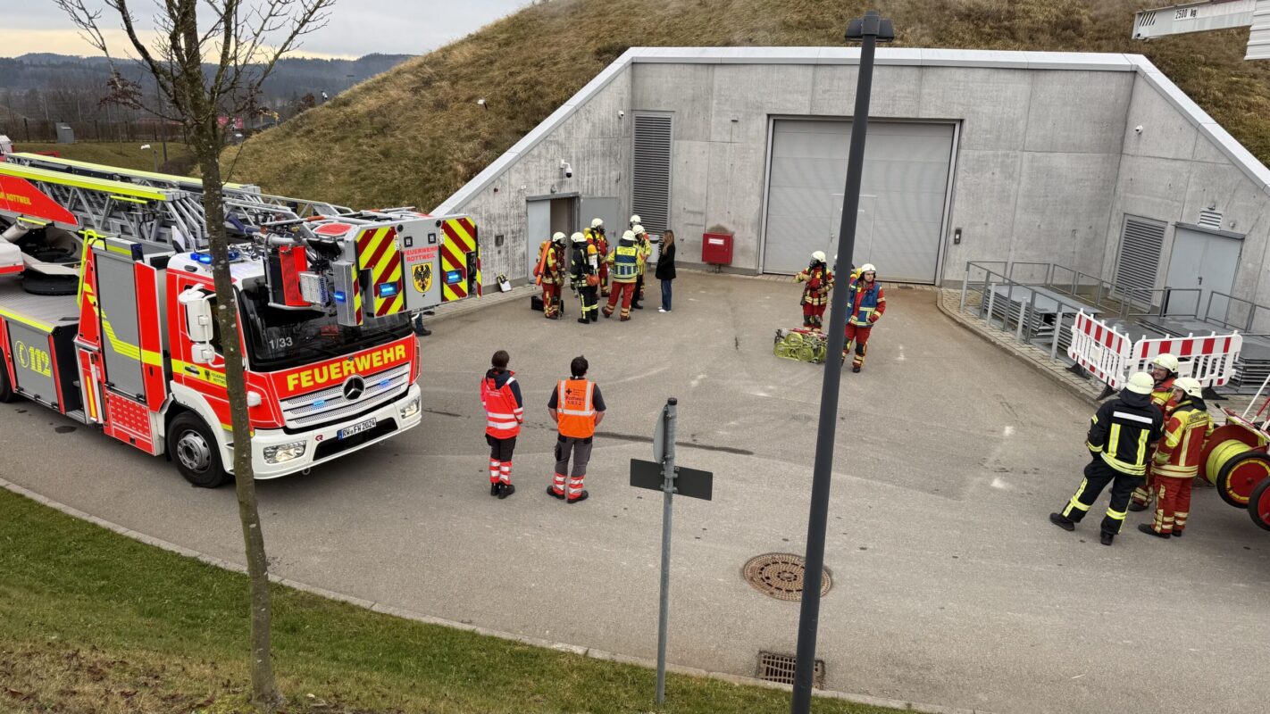 Zur Mittagszeit an diesem Dienstag ist die Feuerwehr Rottweil zum TK Elevator Testturm im Industriegebiet Berner Feld gerufen worden. Die Brandmeldeanlage hatte ausgelöst. Allerdings ohne Anlass.