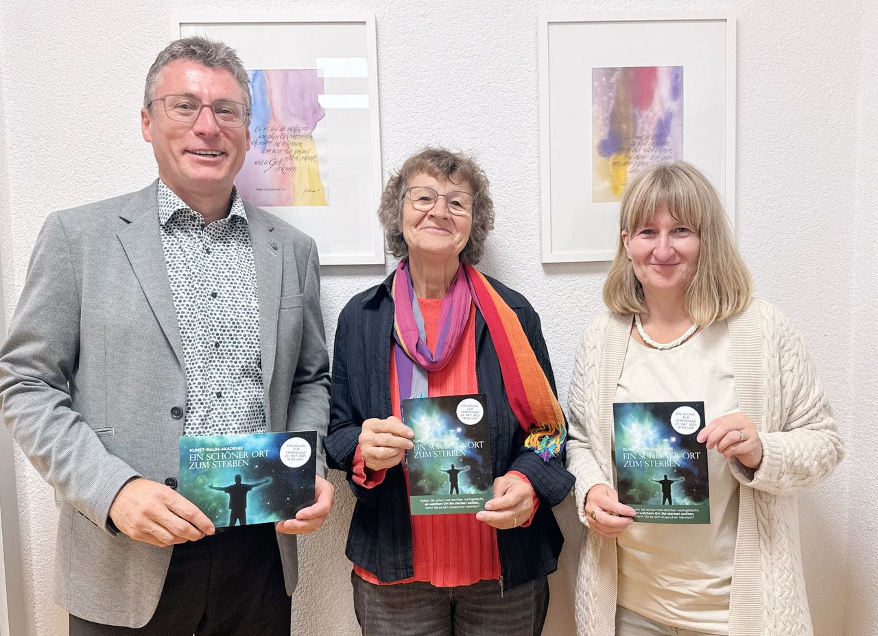 Es ist ihnen ein Herzensanliegen, das Thema Sterben, Tod und Trauer wieder gesellschaftsfähig zu machen und dafür zu sorgen, dass offen darüber gesprochen und diskutiert wird. Die Mitmachausstellung „Ein schöner Ort zum Sterben“ bietet dazu den passenden Rahmen, sind sich Ursula Deiber von der Sitzwache Rottweil, Heike Teufel von der Katholischen Erwachsenenbildung Kreis Rottweil (keb) und Bestatter Frank Hertkorn aus Rottweil einig.
